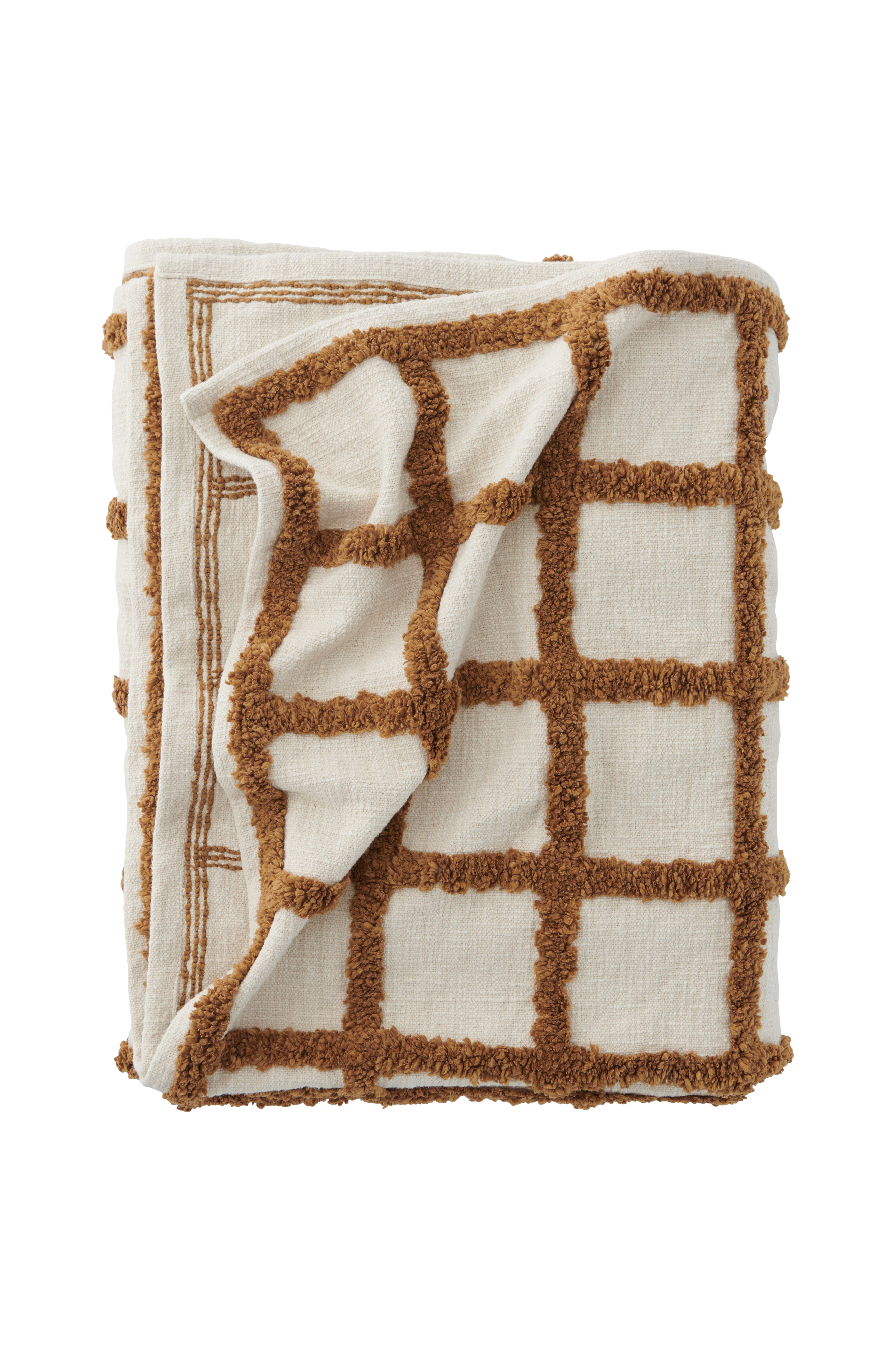 Mjukt överkast av bomull i kraftig kvalitet med tuftade rutor på framsidan och slät baksida.