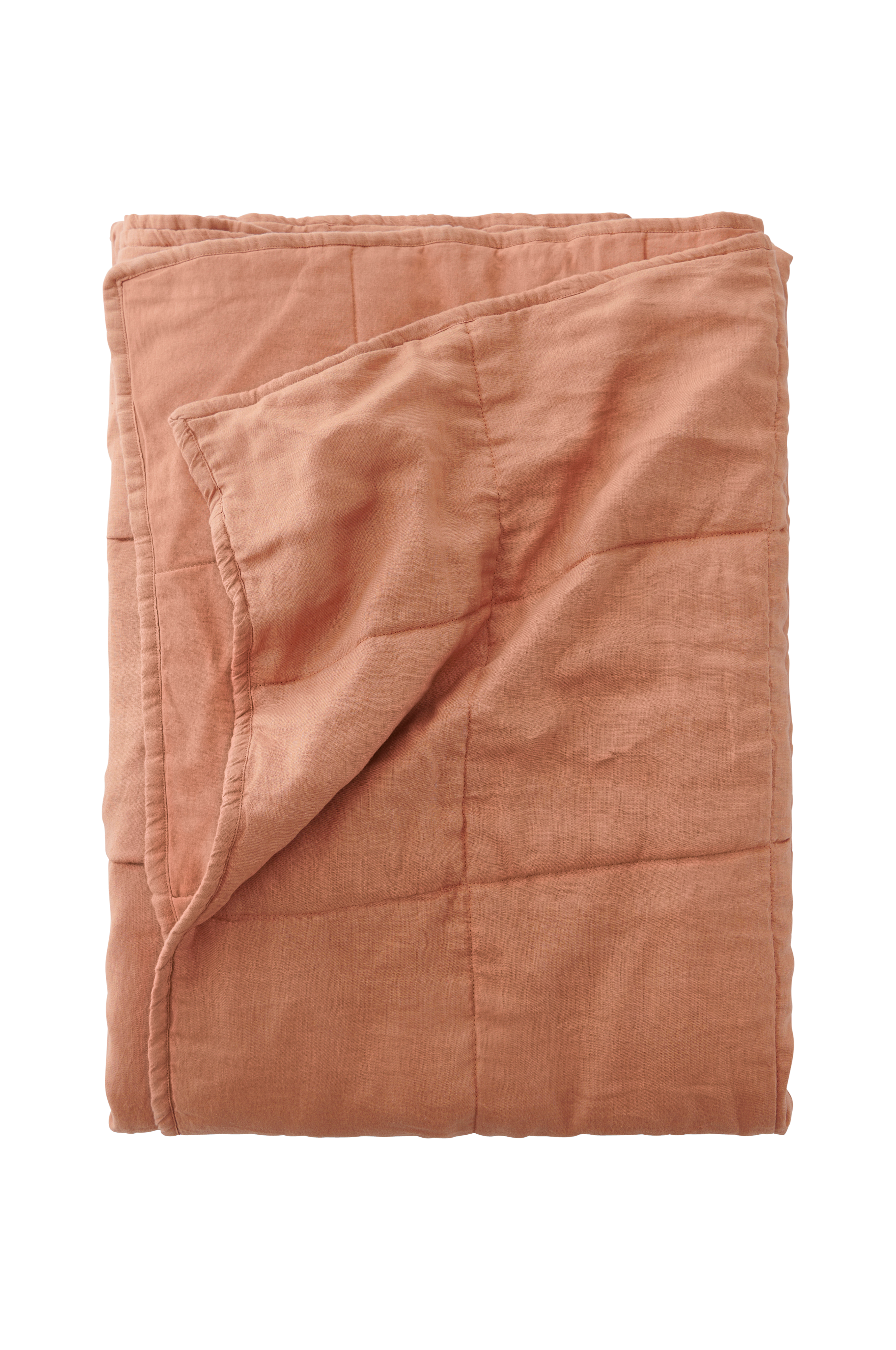 Lätt, rutquiltat överkast med framsida i tvättat lin. Baksida i bomull.