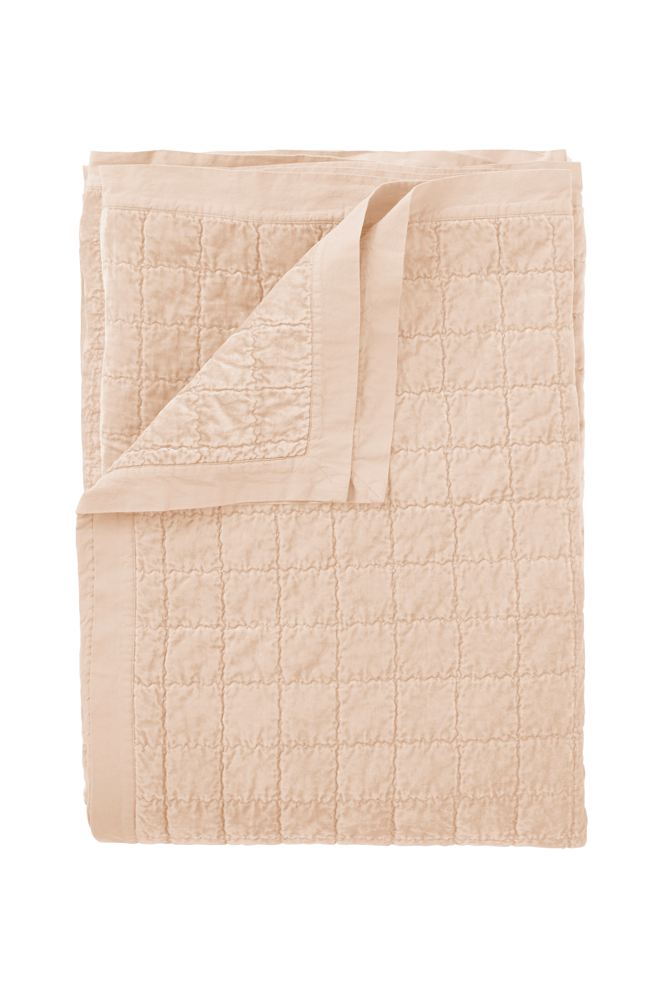 Quiltat överkast med framsida i vintagetvättad sammet med fin lyster. Baksida i bomull.