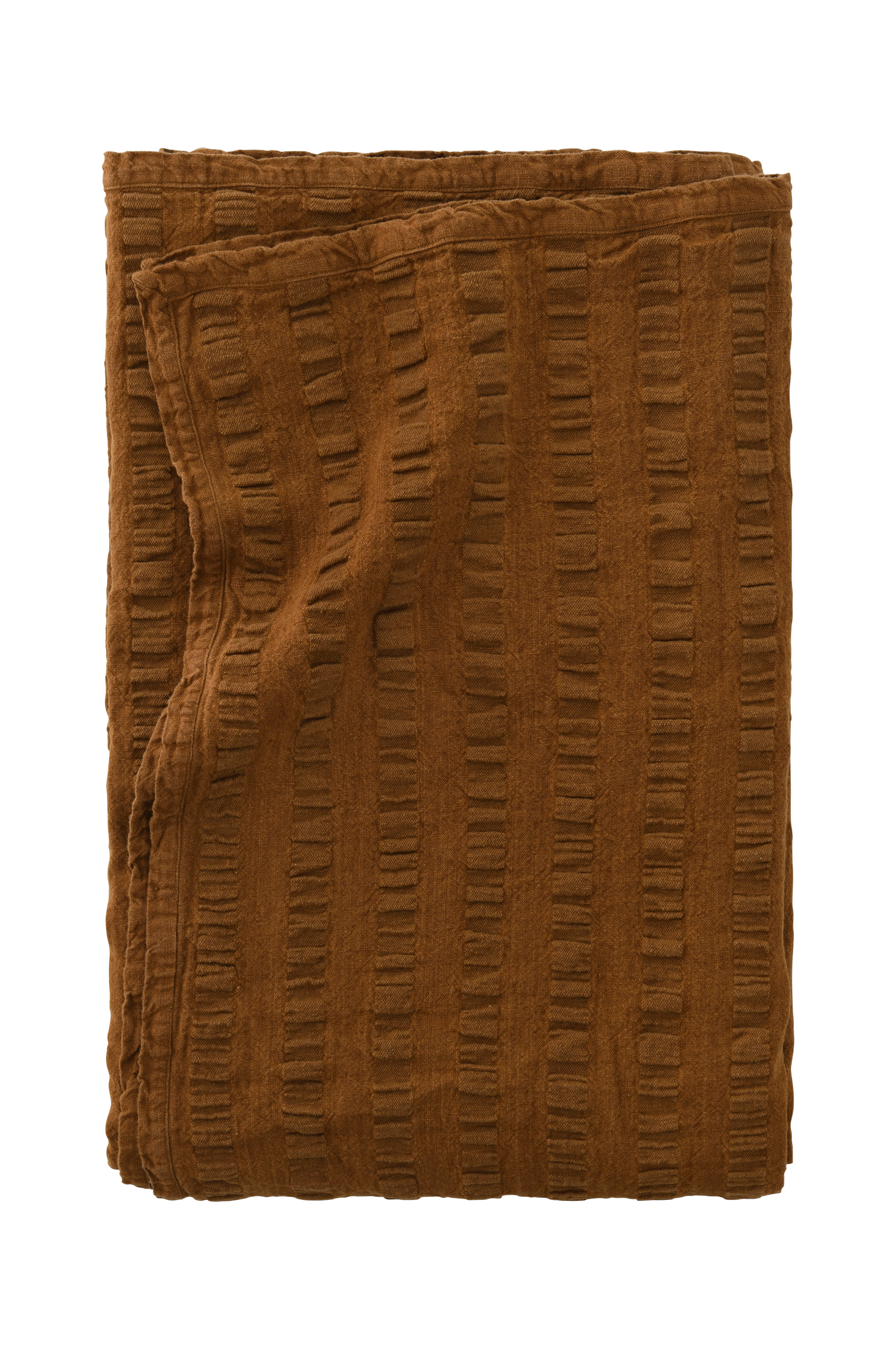 Överkast i bäckebölja (seersucker) av lin och bomull i kraftig kvalitet med klassiskt strukturmönster. Kantband runt om.