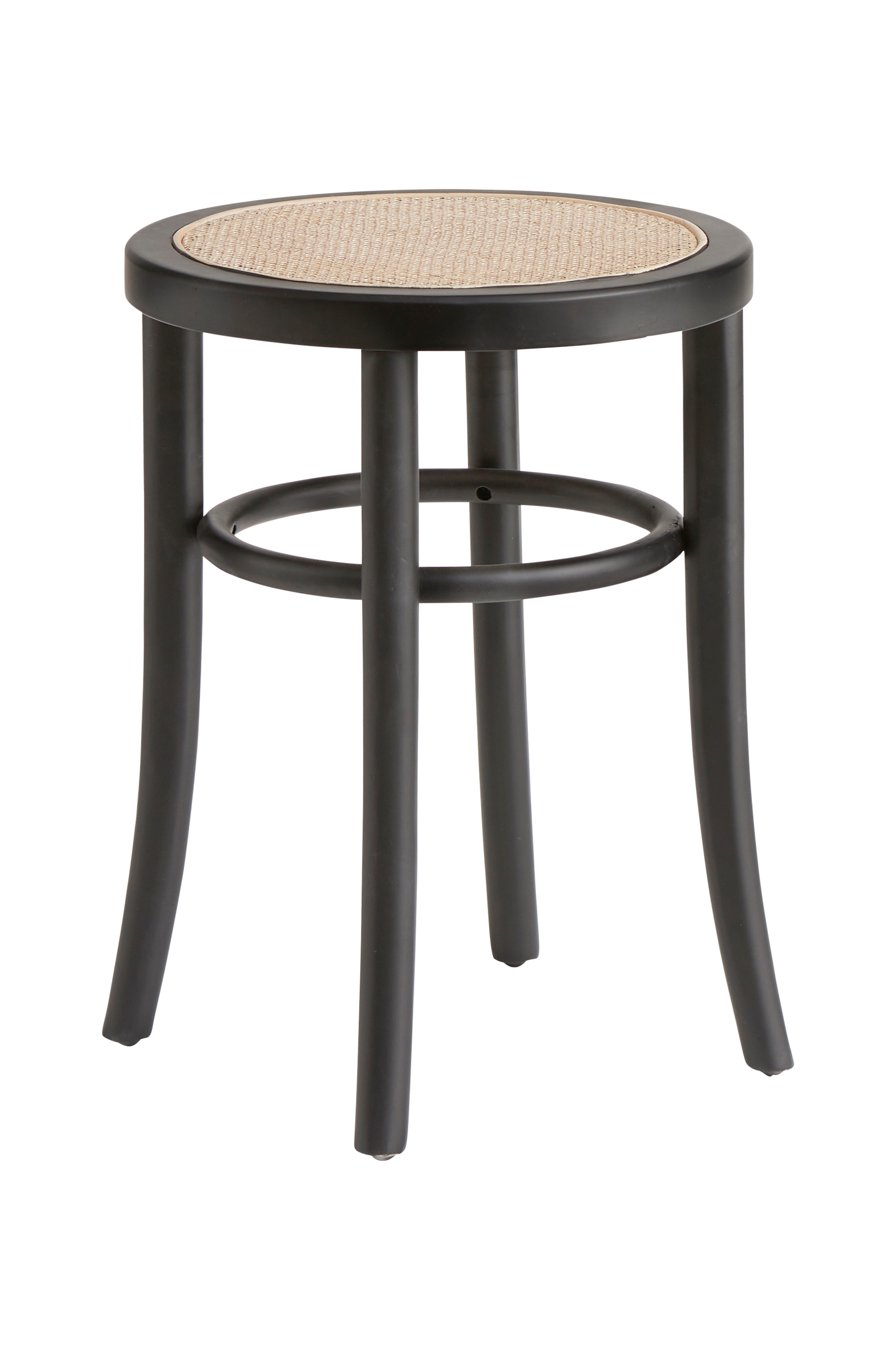 Pall av trä med rottingsits. Höjd: 46,5 cm. Ø sitsen 35 cm. Sitthöjd 46,5 cm. Mått nedtill 40x40 cm. Monterad. Maxvikt 90 kg.