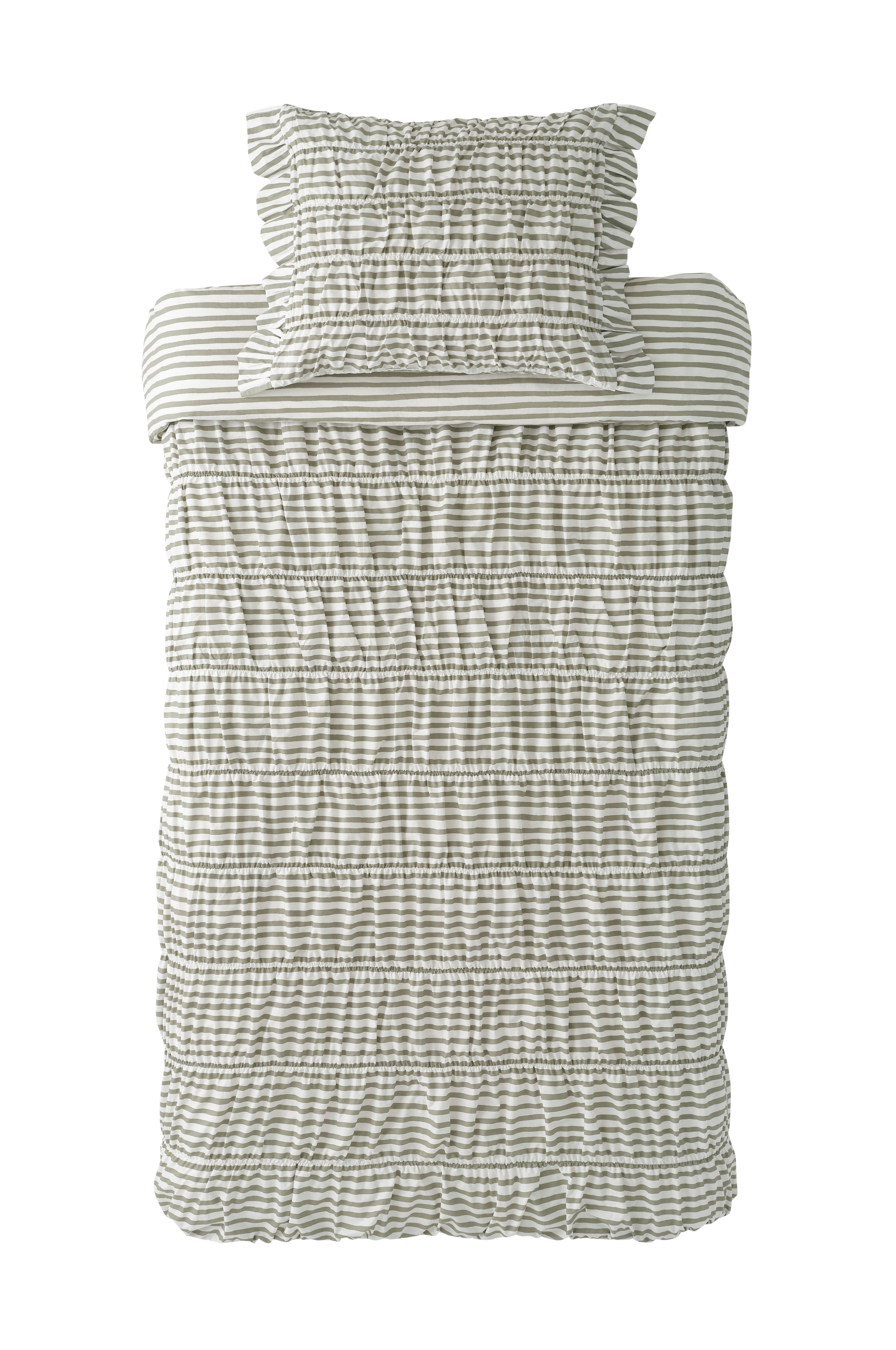 • Framsidan på påslakanet och örngottet har en mjuk resår med dekorativ rynkeffekt