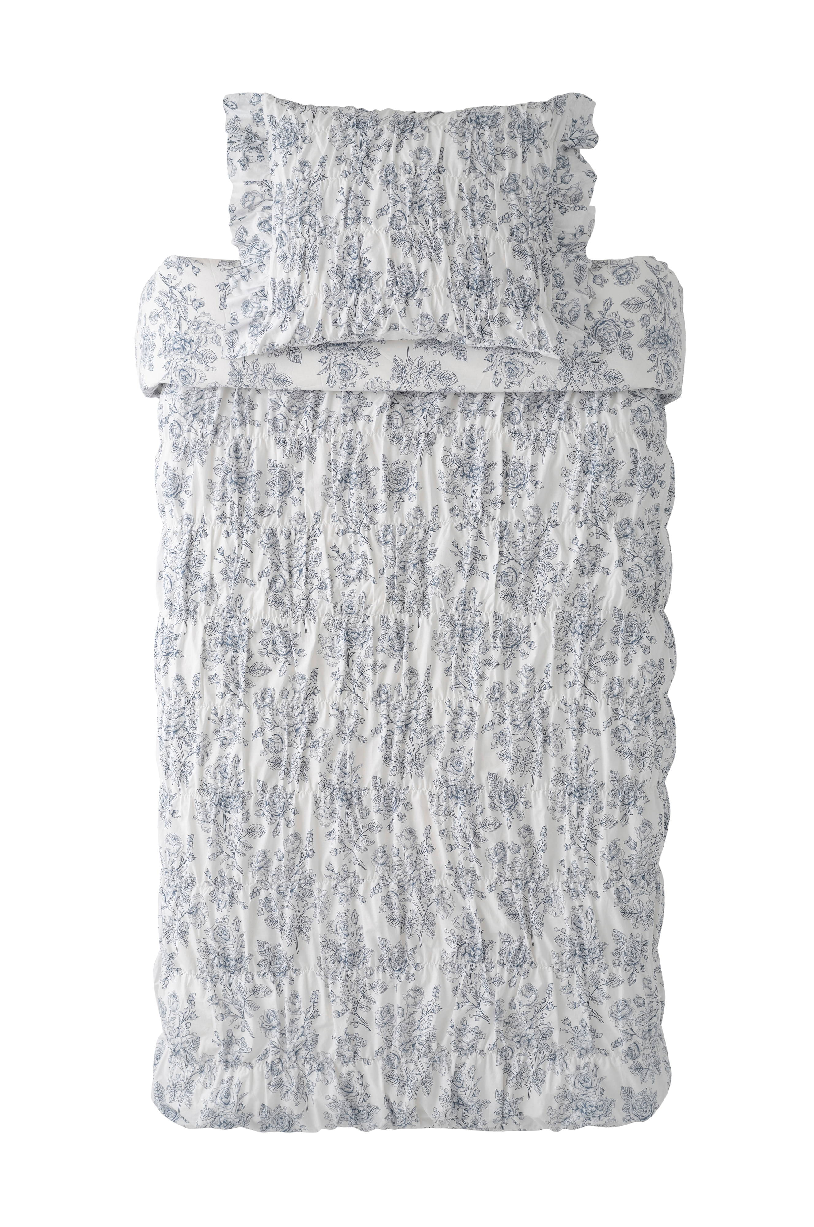 Rynkningen drar även ihop täcket inuti lakanet.