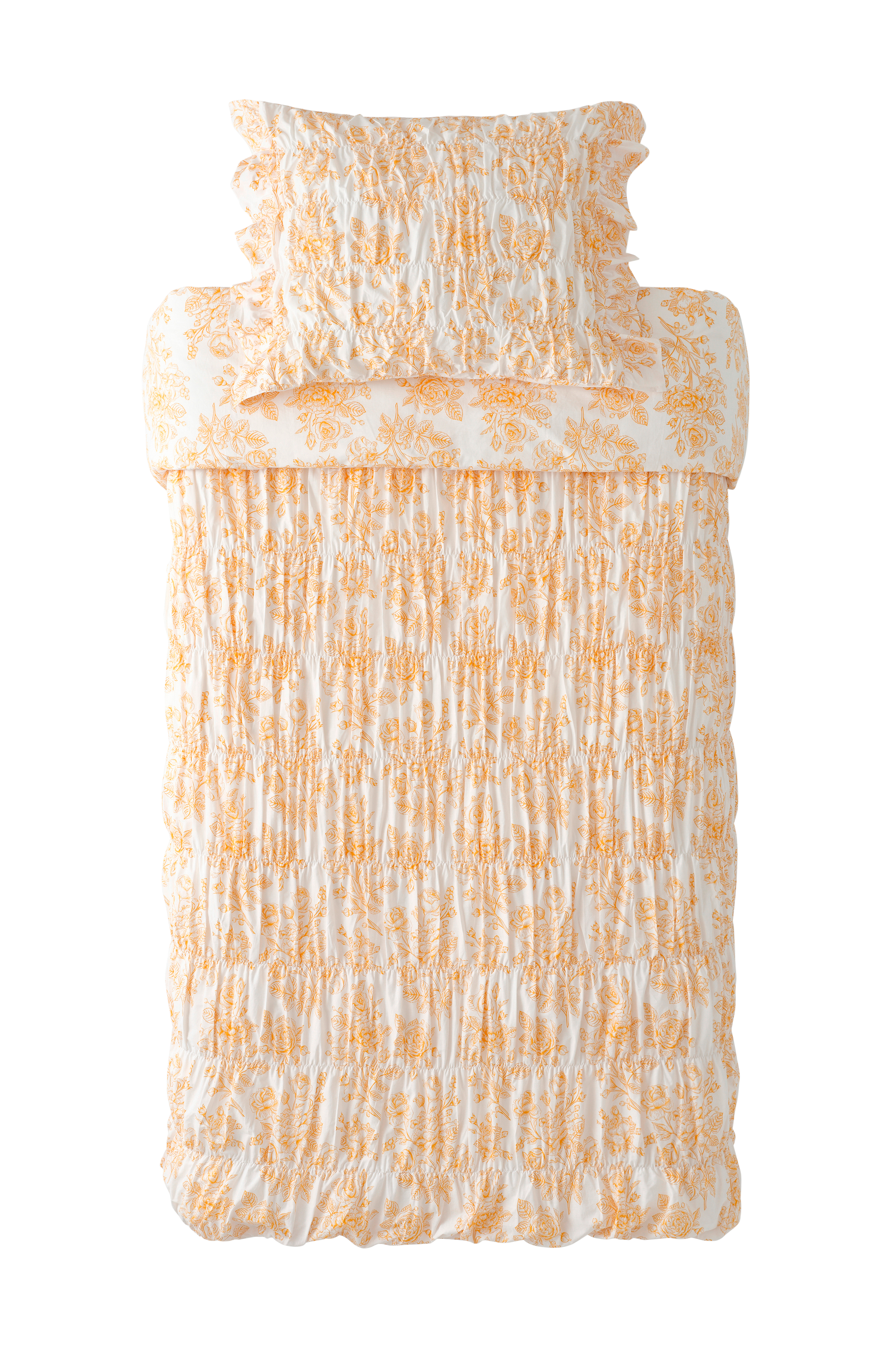 Rynkningen drar även ihop täcket inuti lakanet.