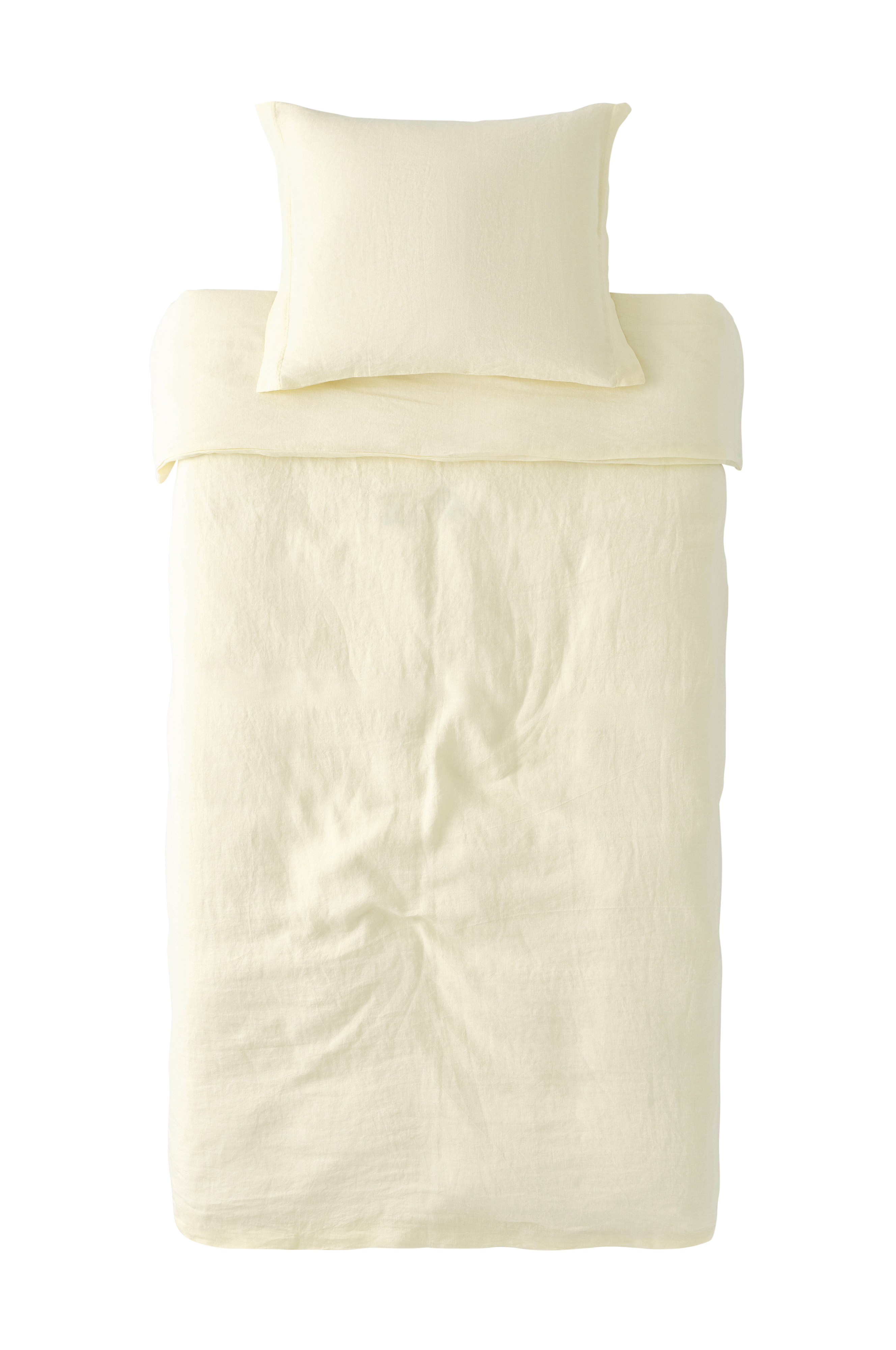 Påslakanset i härlig tvättad linnekvalitet, av franskt lin. Påslakanet har tryckknappar i nederkant. Utan handhål. Örngott med 5 cm vinge på kortsidorna. Vikt 165 g/m2.