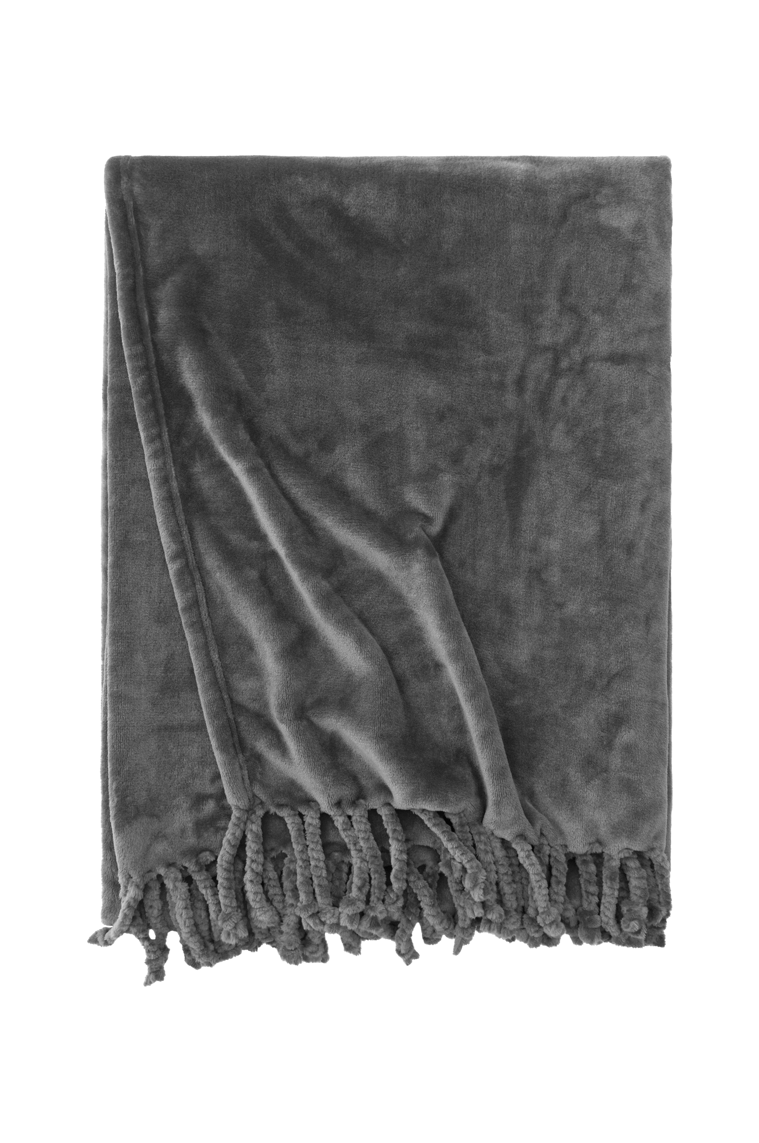 Pläd i mjuk och skön fleece med lätt lyster och handgjorda fransar. Stl 130x170 cm + 8 cm fransar på varje kortsida.