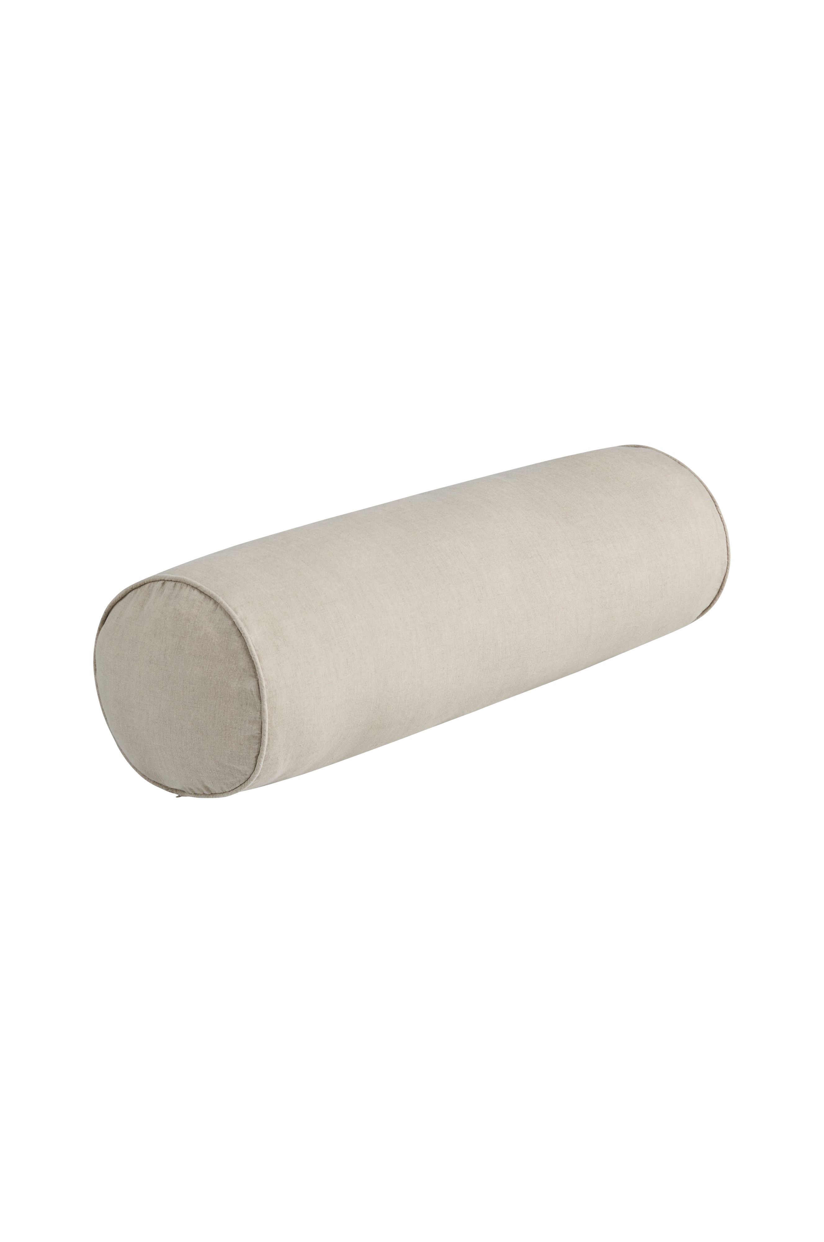 Cylinderformad kudde av franskt lin i tvättad kvalitet. Separat innerkudde i polyester. Passpoalkanter runt om på kortsidorna och dragkedja på undersidan. Bredd 80 cm, diameter 25 cm.