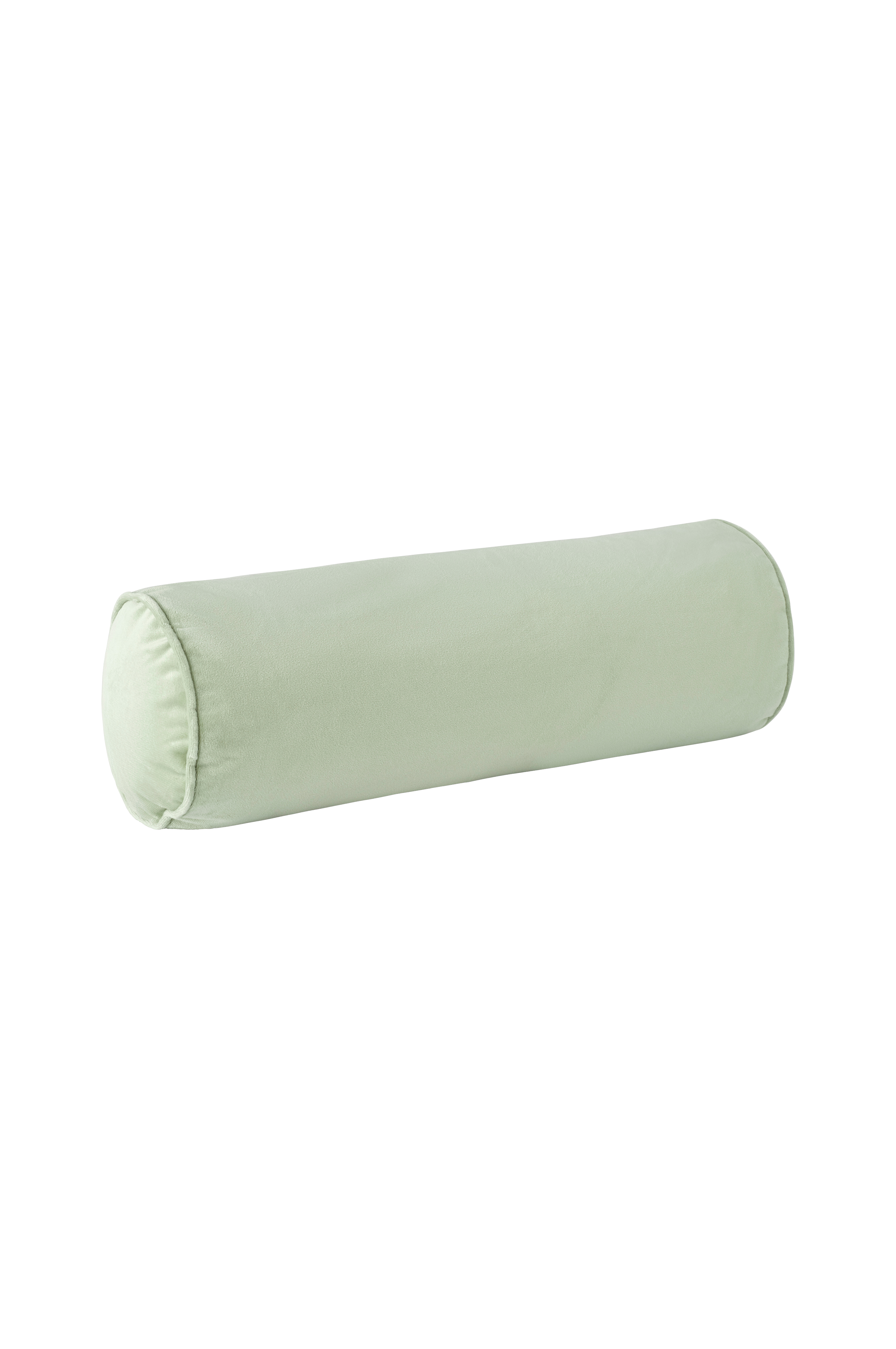 Cylinderformad kudde i sammet med innerkudde i polyester. Passpoalkanter runt om på kortsidorna. Av återvunnen polyester. Dragkedja på undersidan. Bredd 55 cm, diameter 18 cm.