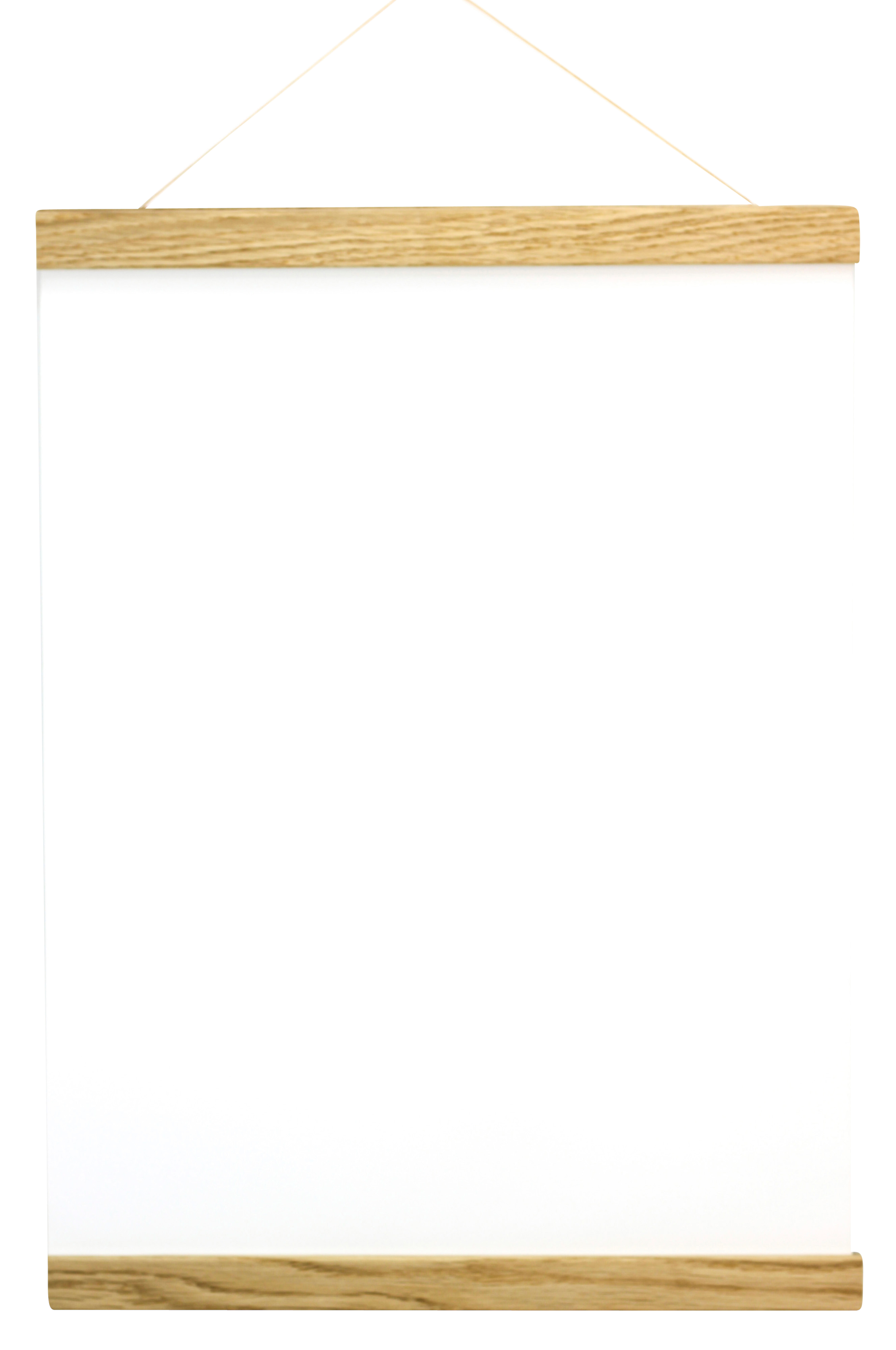 Poster hanger med starka magneter. Kläm fast affischer, posters, foton mm upp- och nedtill i de dubbla listerna och häng upp. levereras med fast snöre. Levereras förpackad i krympfilm. Finns att välja i olika färger, såsom Ek (träslag ek), Valnöt (träslag ask), Vit och Svart (träslag furu). Passar till posters som är 30 cm, 50 cm eller 70 cm breda, beroende på vilken storlek du väljer på ramen.