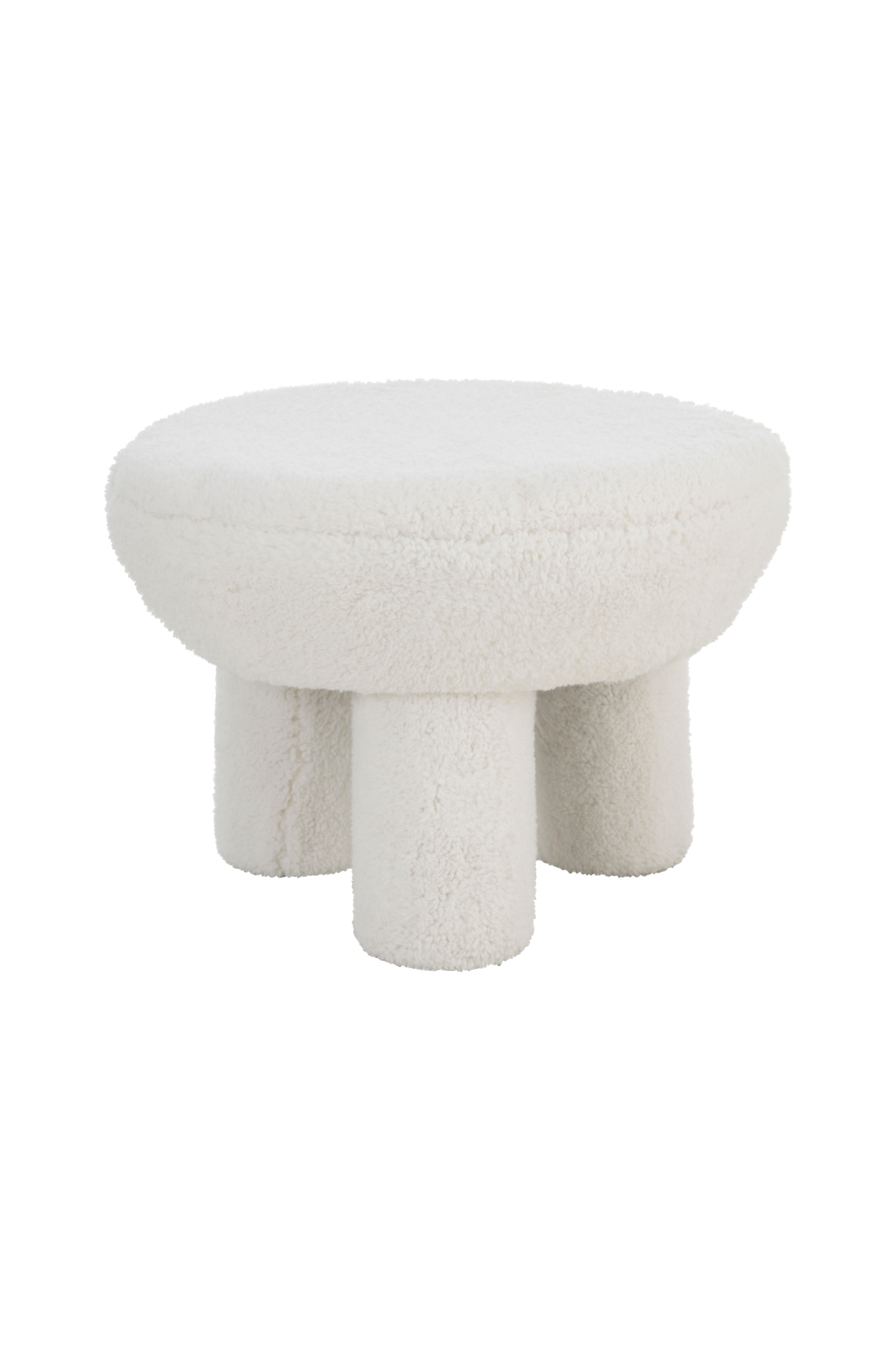 Puff med klädsel i mjuk pälsimitation av polyester. Stomme i furu och plywood. Skumfyllning. Frihöjd 25 cm. Monterad.