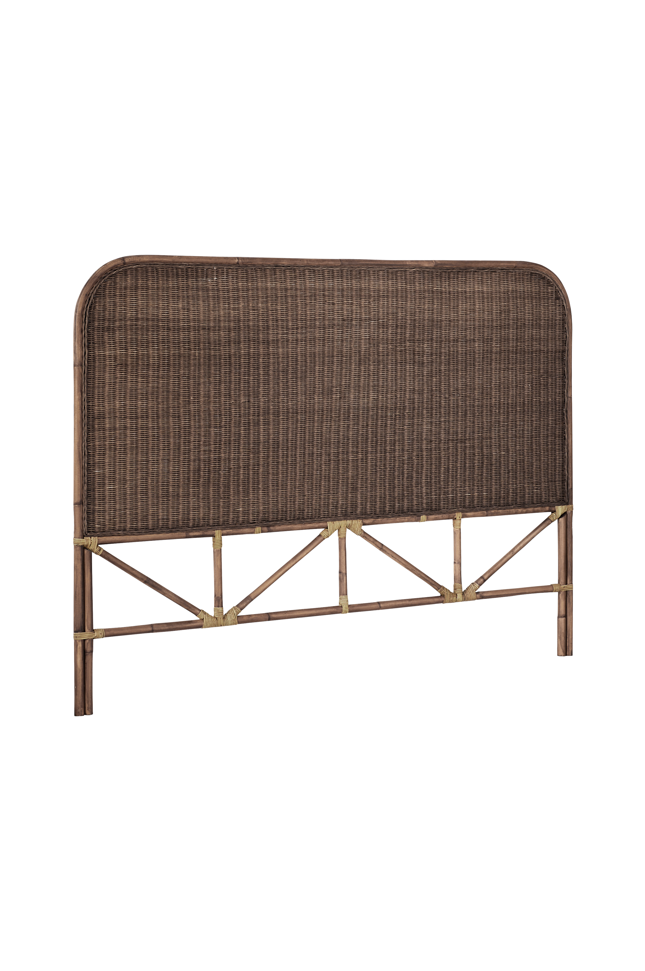 Huvudgavel i rotting med tätflätad topp och dekorflätad kant. Gaveln ställs på golvet. Mått: Bredd 181 cm, höjd 137 cm, djup 4 cm.
