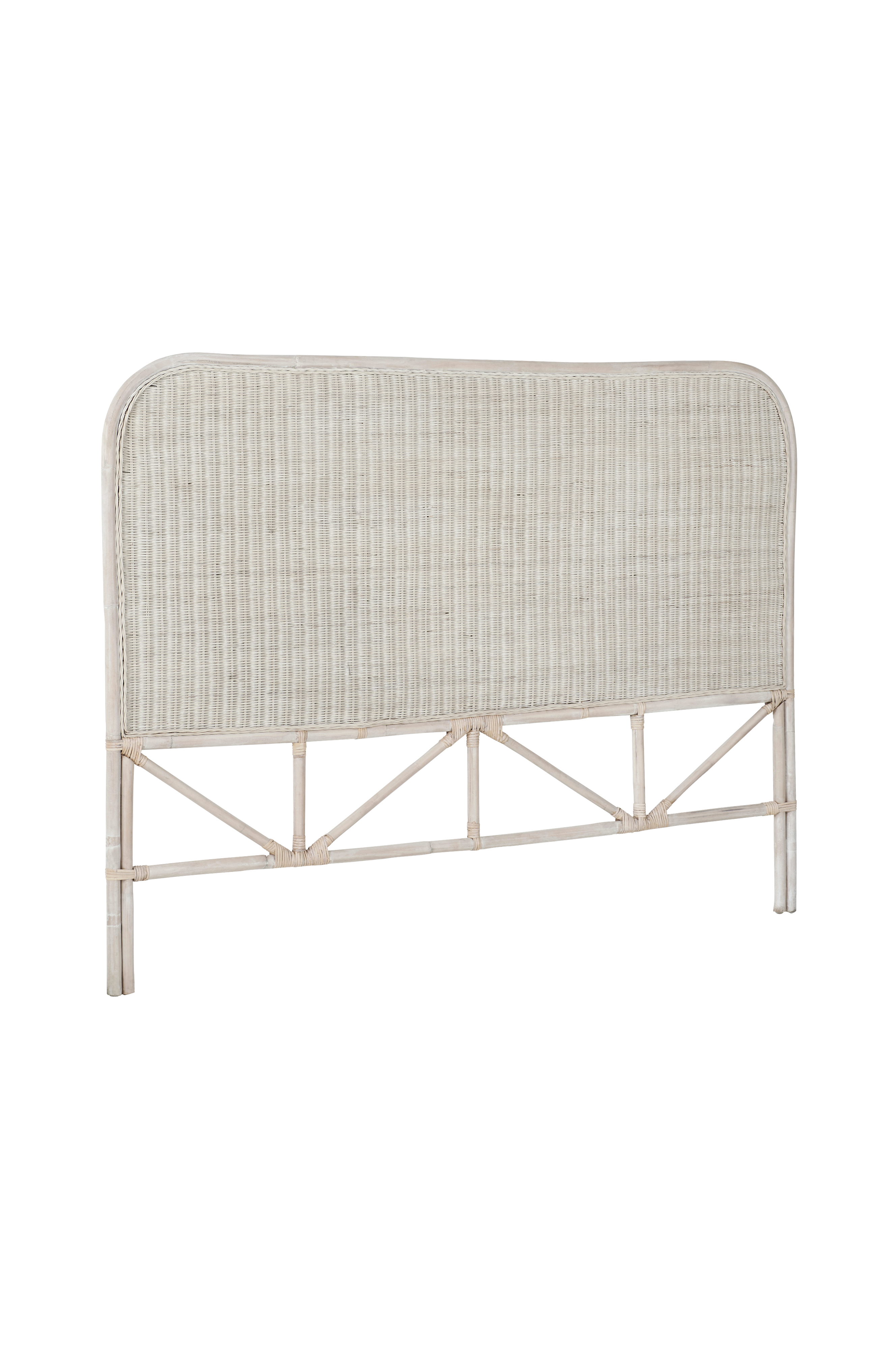 Huvudgavel i rotting med tätflätad topp och dekorflätad kant. Gaveln ställs på golvet. Mått: Bredd 181 cm, höjd 137 cm, djup 4 cm.