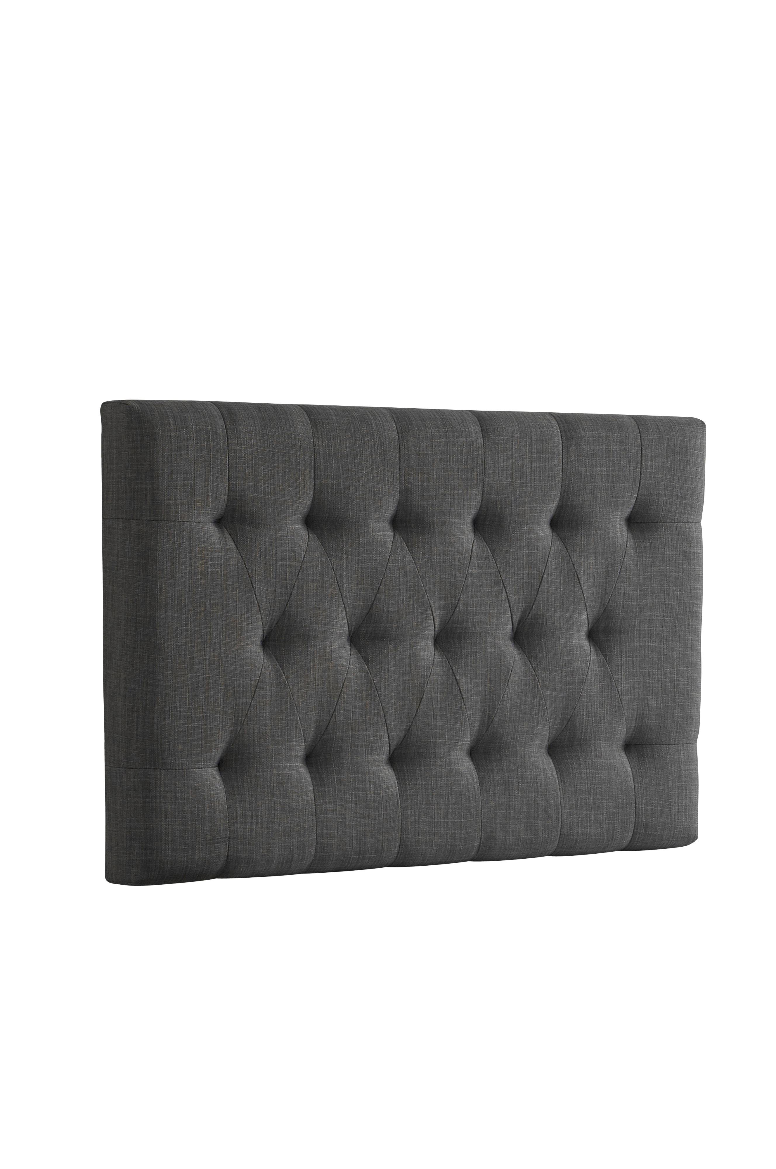 Stoppad sänggavel i bomullscanvas. Hängs direkt på väggen. Ram av MDF, stoppning av polyeter. Höjd 61 cm. Bredd 95 cm. Djup 8 cm. Vikt 13 kg.