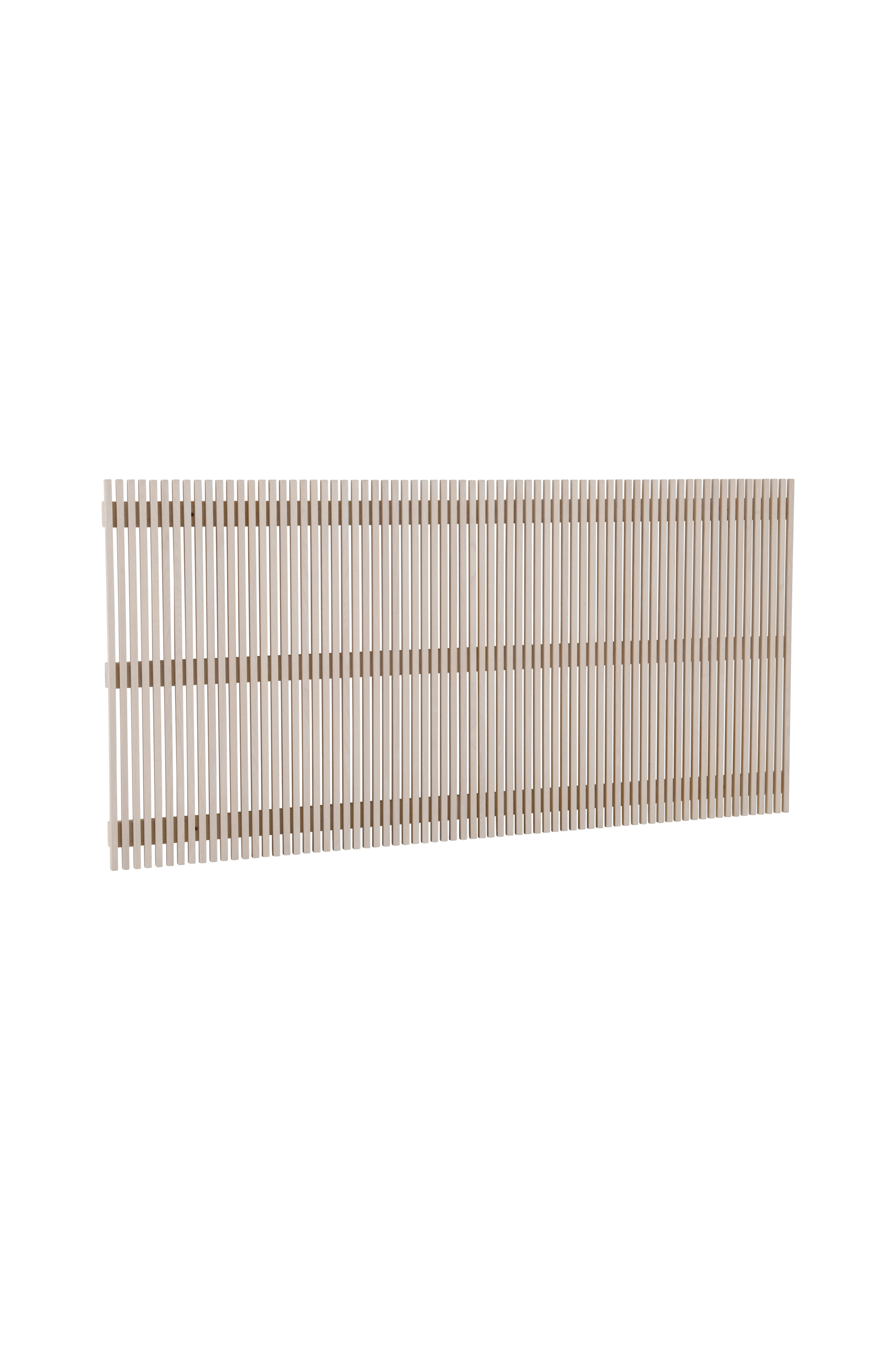 Sänggavel i massiv bok med dekorativa träribbor. För upphängning på väggen.