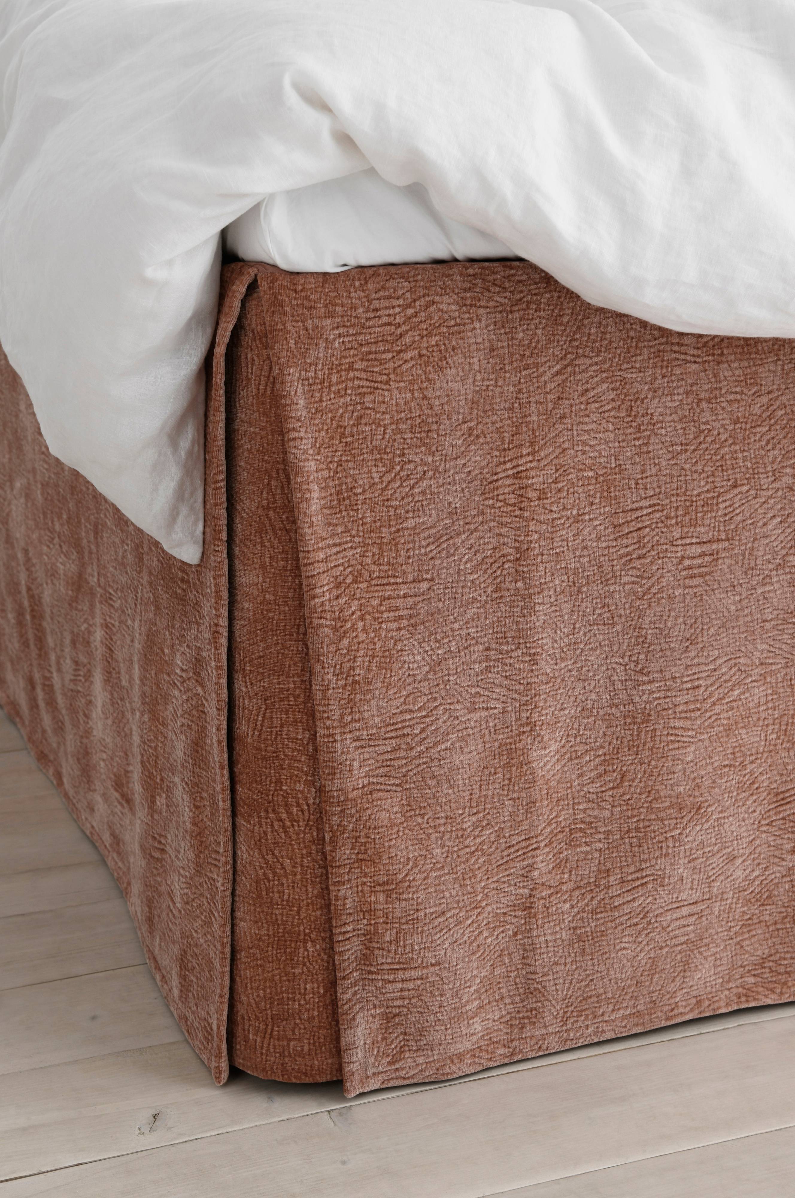 Sängkappa med topp i bomull och kappa i krinklad sammet med tvättad finish. Rak modell med öppna hörn. Dekorativ, sydd kant nedtill runt om. 5 storlekar: 90x200, 120x200, 140x200, 160x200 och 180x200 cm. Höjd 60 cm.