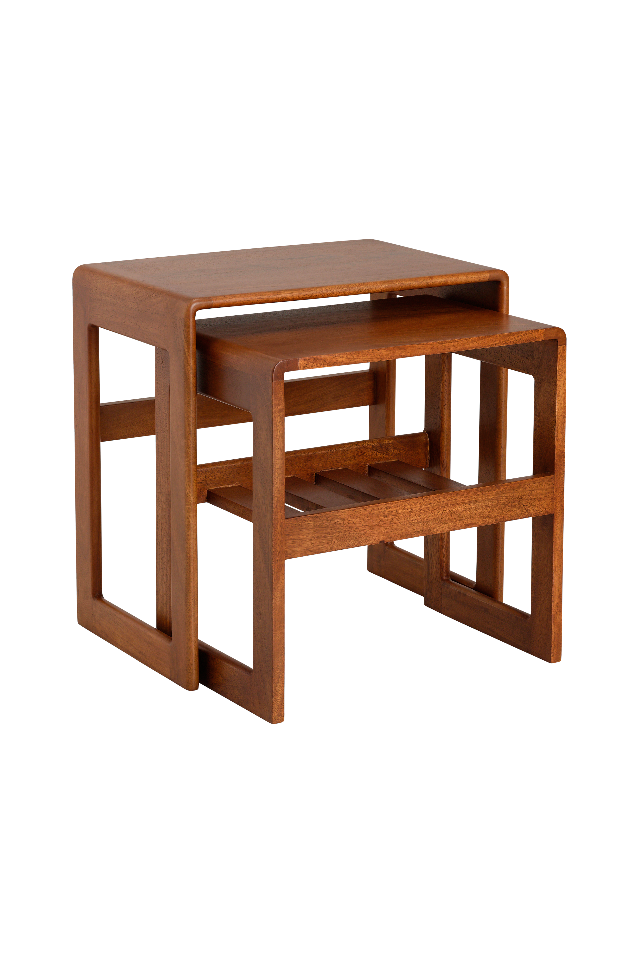 • Ett mindre sidobord med hyllplan i betsat mangoträ