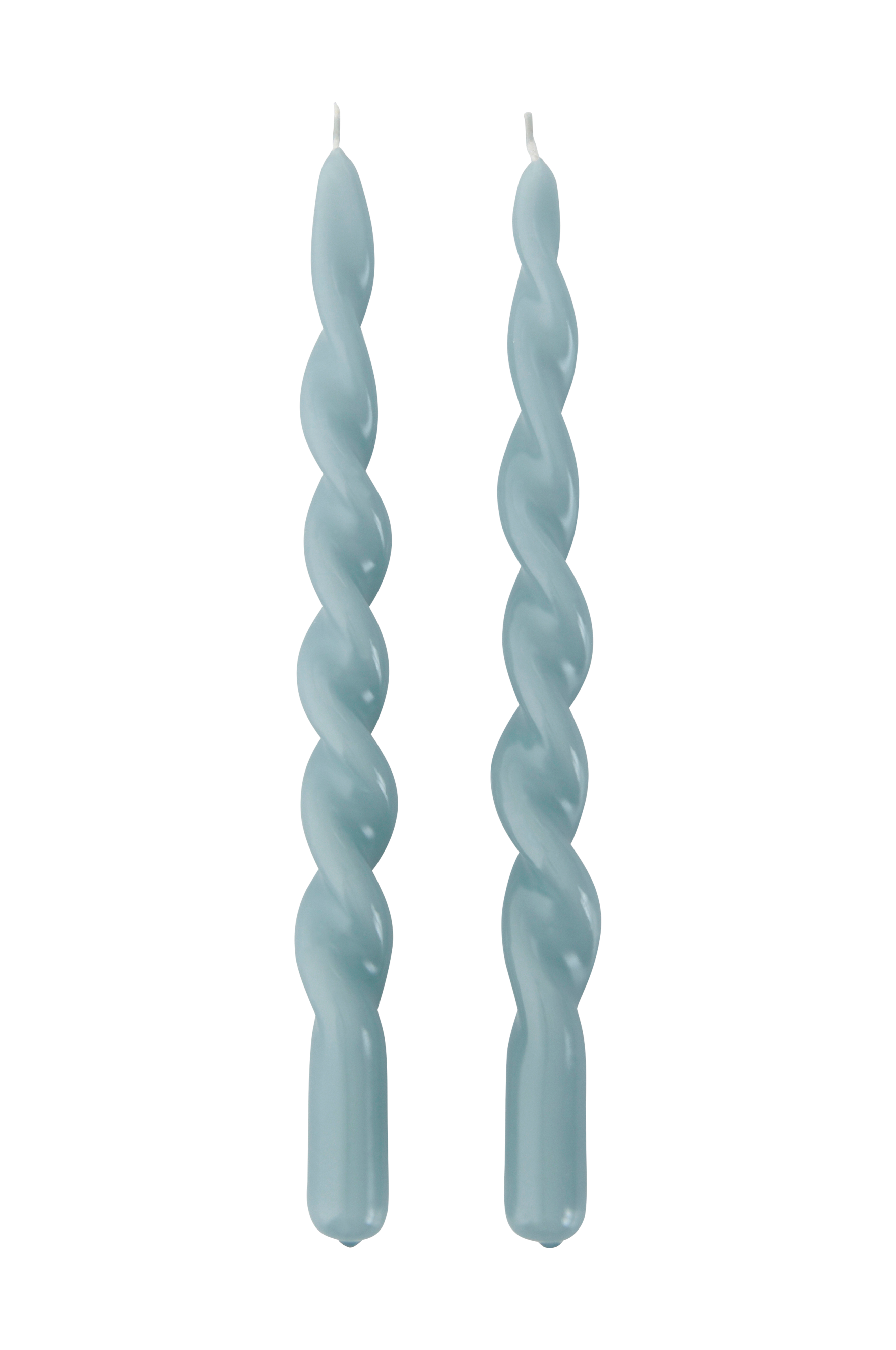 Skruvade, platta ljus i 2-pack. Höjd 29 cm, diameter 2,2 cm. Brinntid ca 9 timmar. Ljuset är tillverkat av 100% paraffin. Paraffin används i stället för stearin, eftersom detta material är mjukare vilket gör att ljuset kan skruvas och få sin form. Detta är inte möjligt att göra med stearin, som är för hårt för att kunna skruvas.