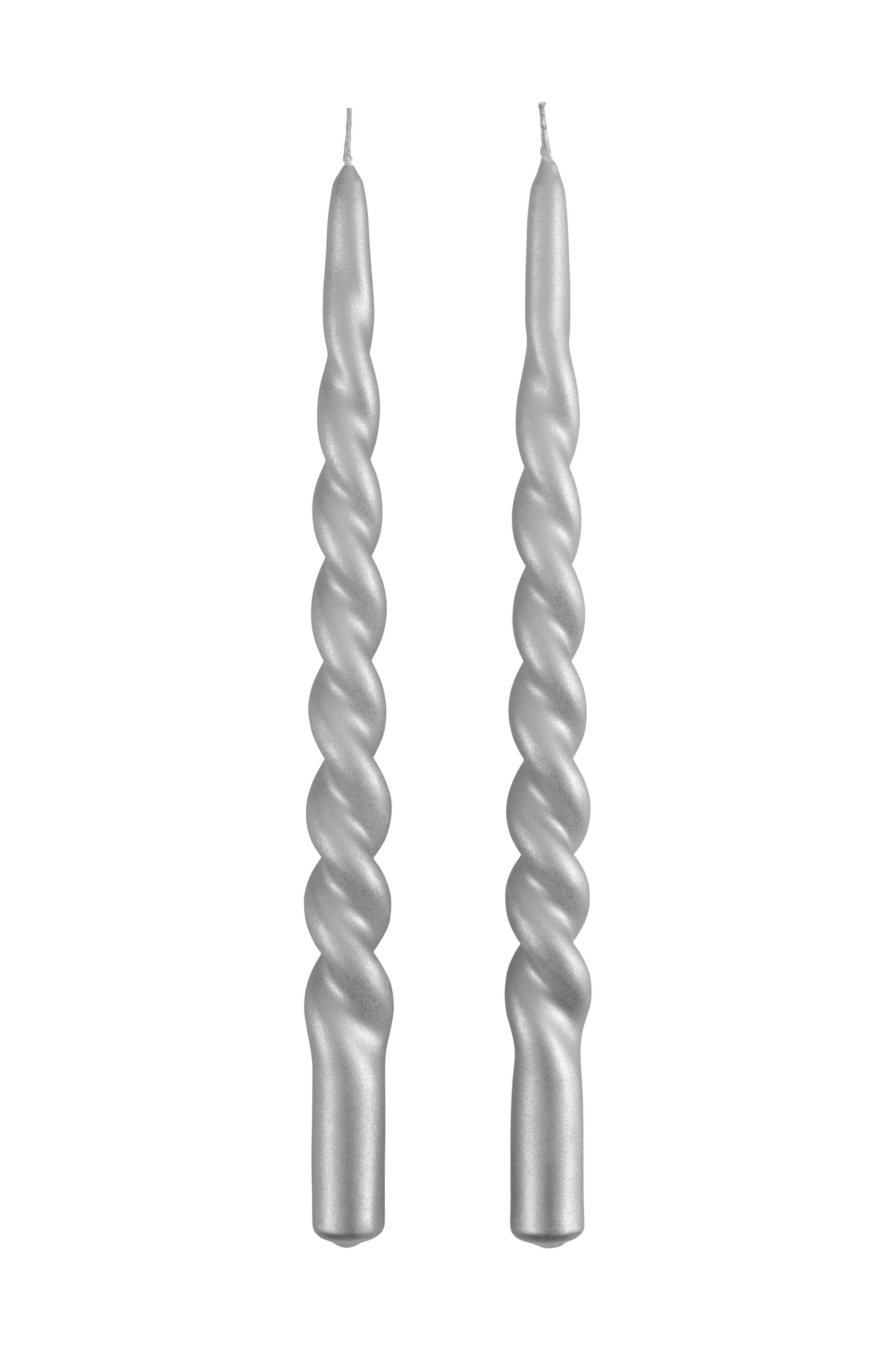 Skruvade, platta ljus i 2-pack. Höjd 29 cm, diameter 2,2 cm. Brinntid ca 9 timmar. Ljuset är tillverkat av 100% paraffin. Paraffin används i stället för stearin, eftersom detta material är mjukare vilket gör att ljuset kan skruvas och få sin form. Detta är inte möjligt att göra med stearin, som är för hårt för att kunna skruvas.