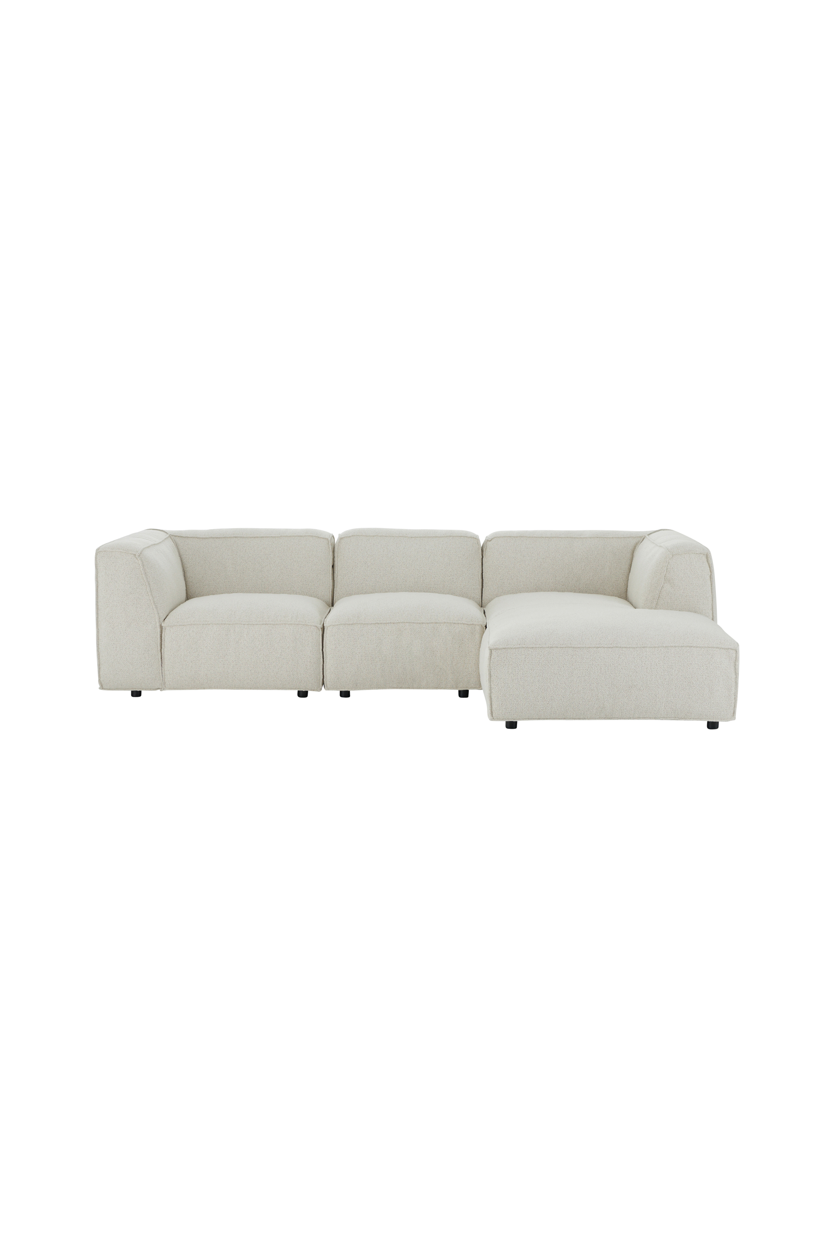 3-sits soffa med klädsel i bouclé. Högerställd schäslong (kan ej vänstermonteras).