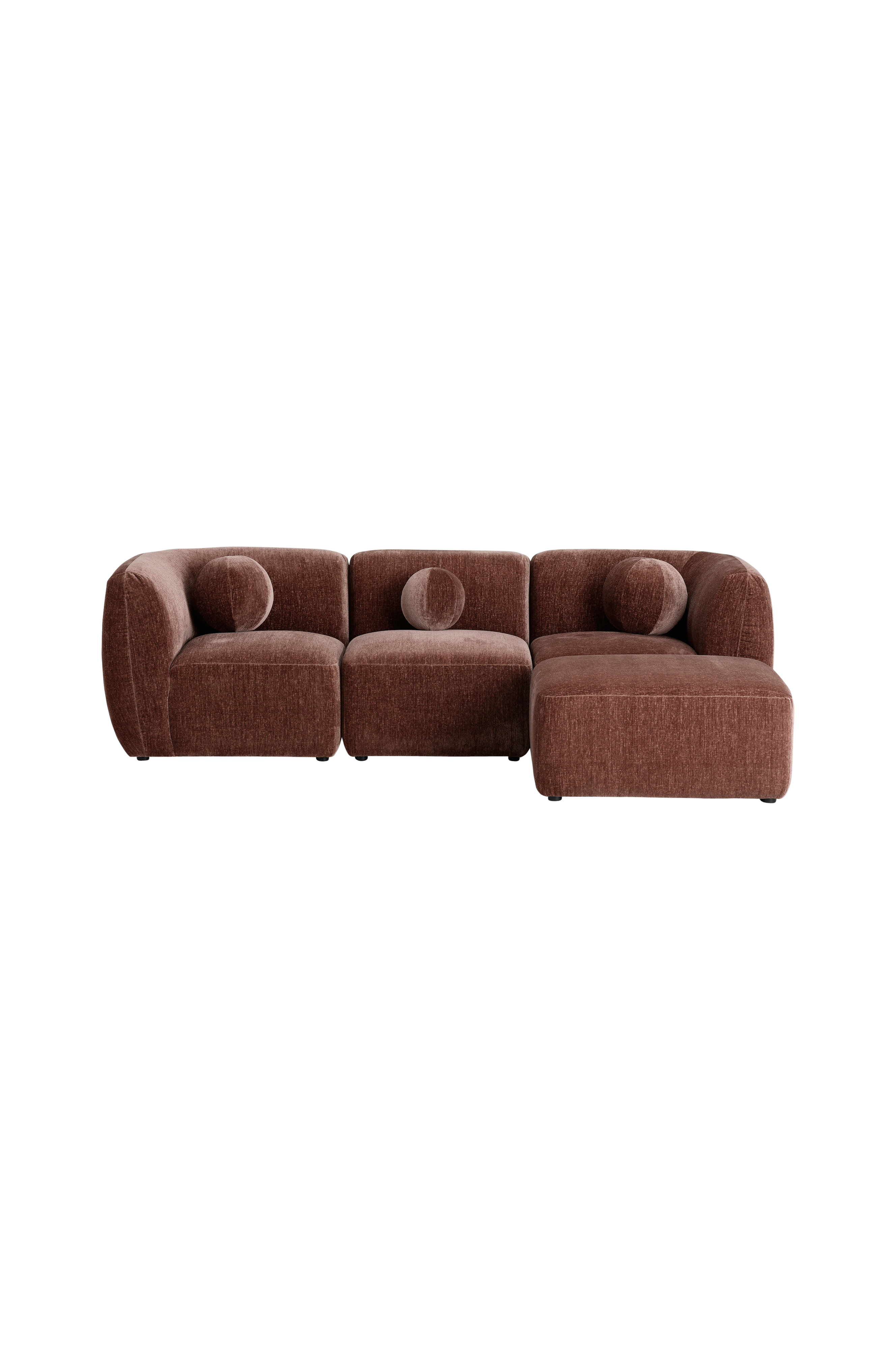 Soffan ULLARIKA består av 4 delar: 2 hörndelar, en mittdel och en puff. Alla delar kan användas separat eller kopplas ihop. Puffen kan monteras både till vänster och till höger.