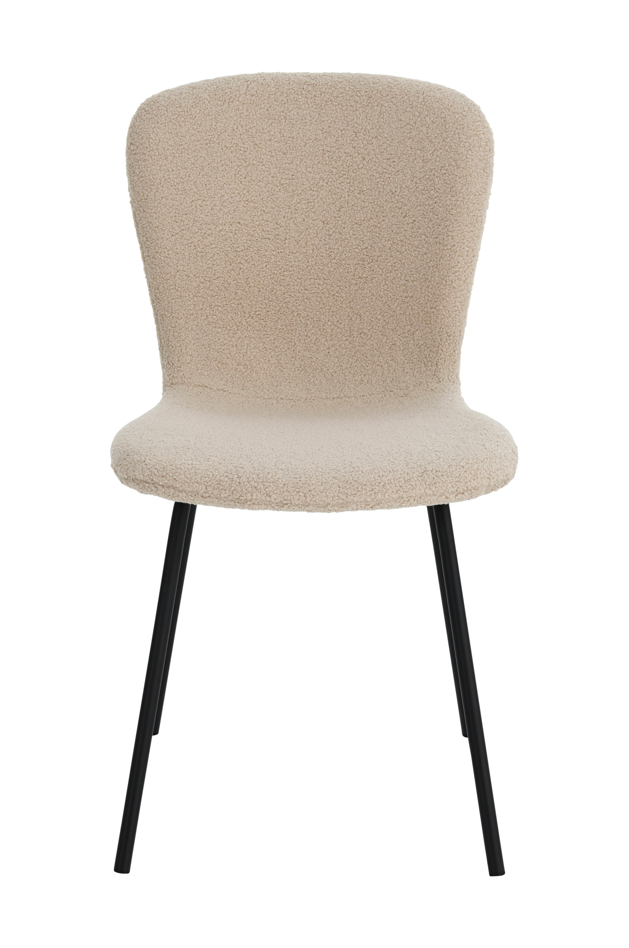 2 stolar i stilren modell med ben och stomme i pulverlackad metall. Klädsel i teddy med skumfyllning. Enklare montering.