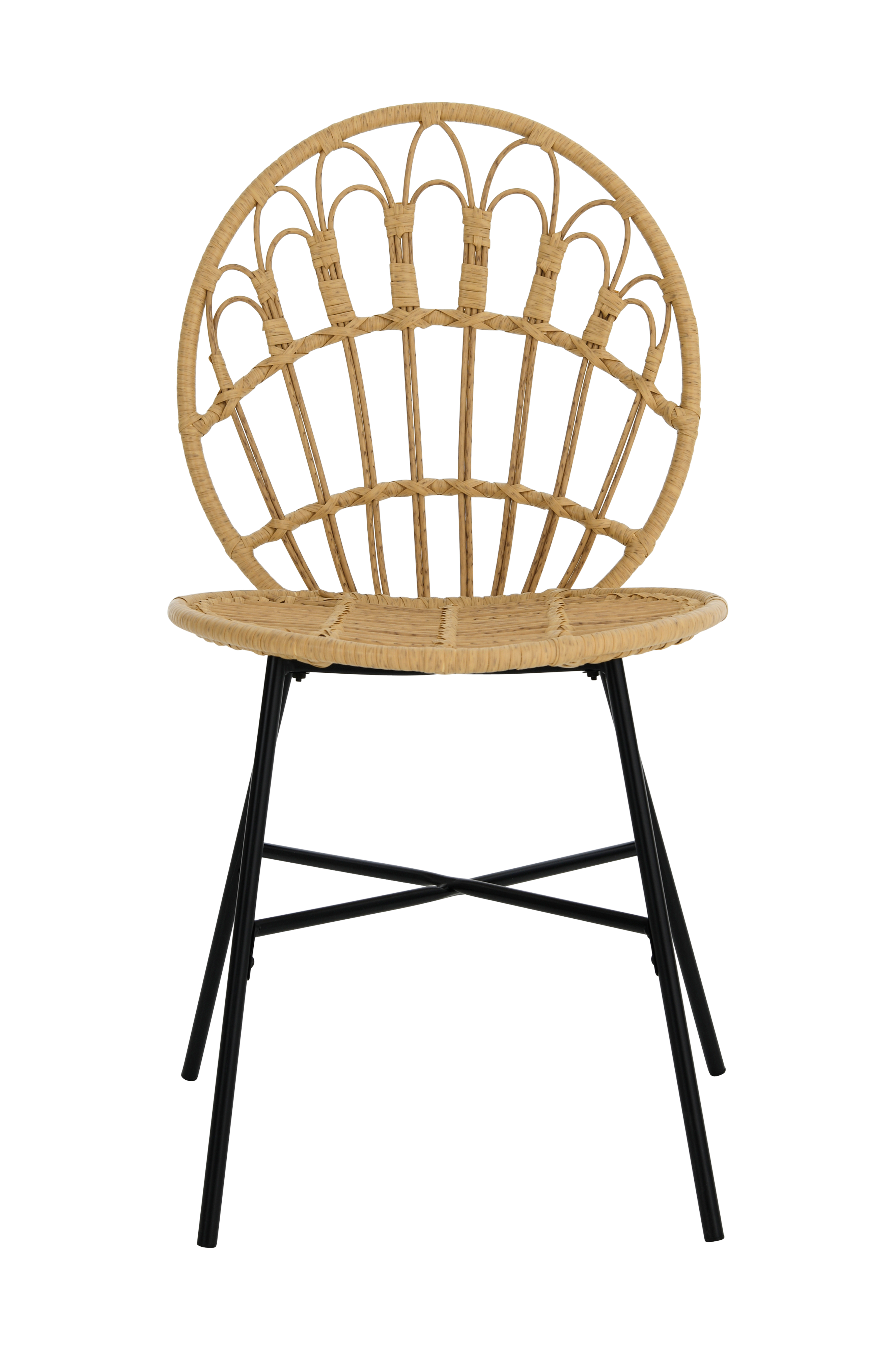 2 stolar som även kan användas utomhus. Av konstrotting. Ben i pulverlackad och rostskyddsbehandlad metall . Levereras monterade. 2-pack.