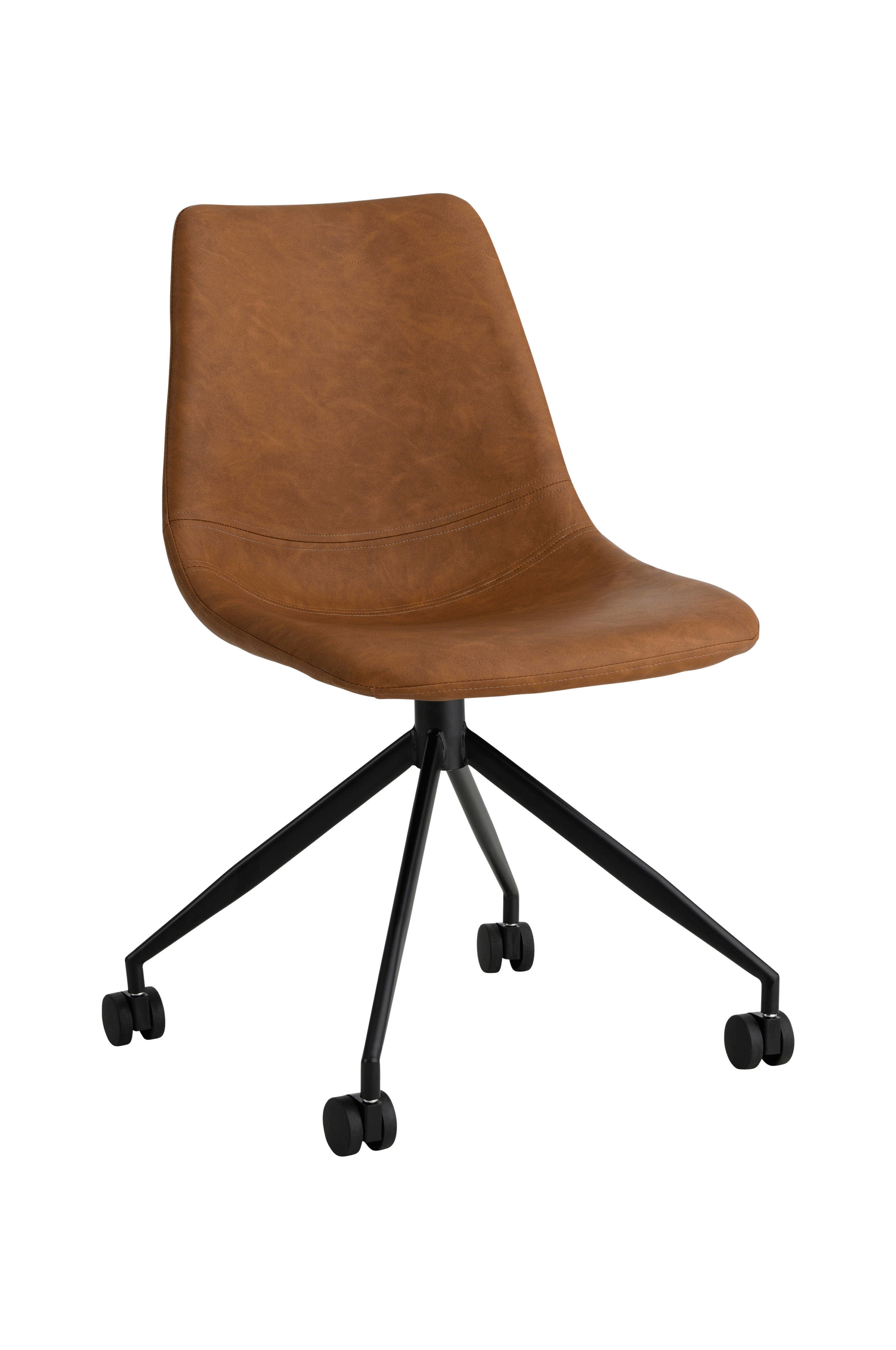 Stol som passar lika bra på kontoret som vid matbordet. Av konstläder med ett underrede i lackerad aluminium med hjul. Höjd 84 cm, bredd 47 cm, Djup 66 cm. Sitthöjd 46 cm, Sittdjup 46 cm. Lättare montering.