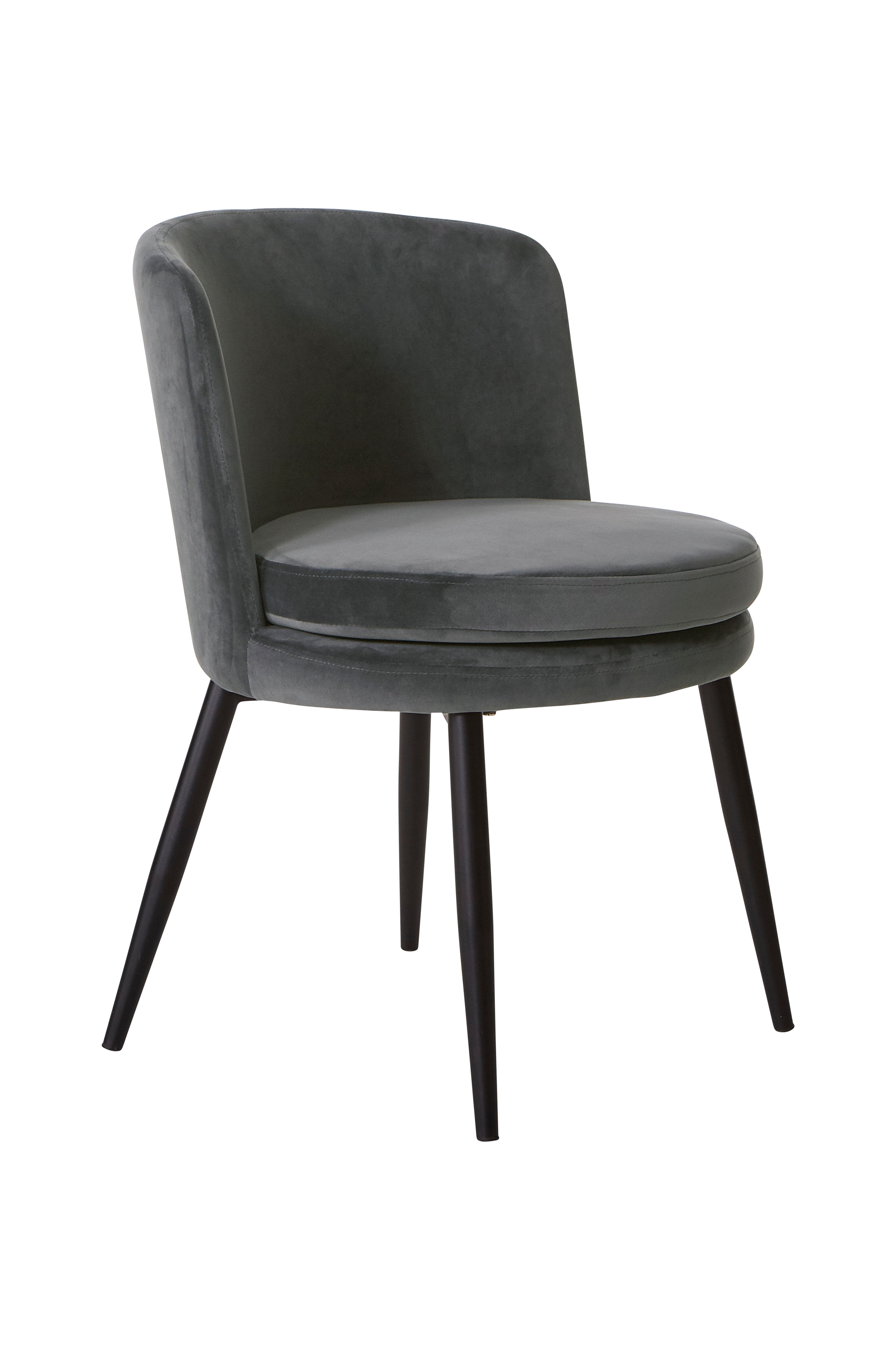 Stol med rundad rygg och klädsel i sammetstyg, lika snygg i matsalen som i hallen. Ben av metall och fyllning av polyeter.