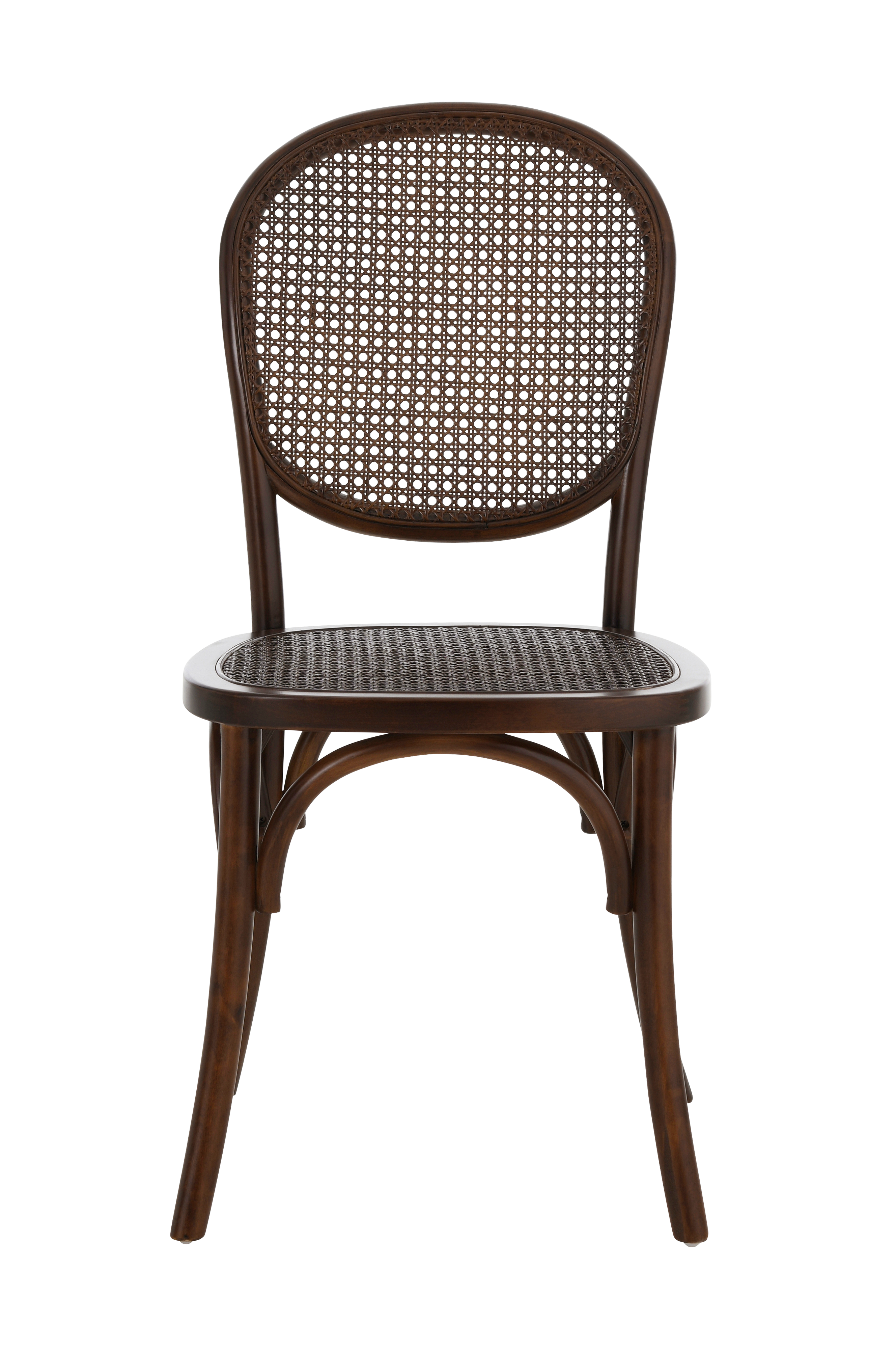 Två stolar av björk med rygg och förstärkt sits av rotting. Höjd 89 cm, bredd 44,5 cm, djup 56 cm. Sittdjup 42 cm, Sitthöjd 46,5 cm. Monterade. Vikt 10 kg.