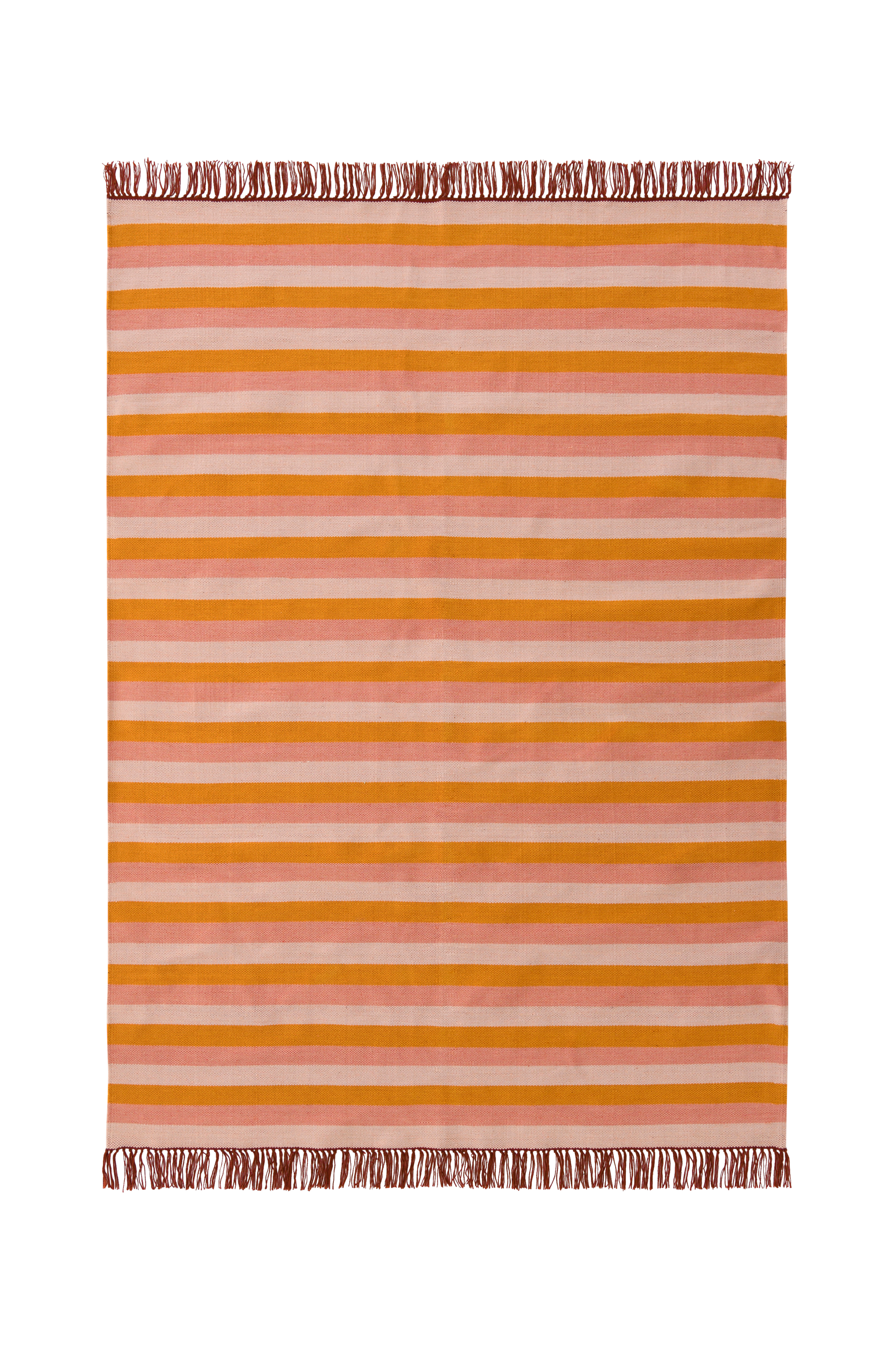 Vävd trasmatta i återvunnen polyester med fransar på kortsidorna. Mattan kan även användas utomhus, t.ex. på balkongen eller altanen.