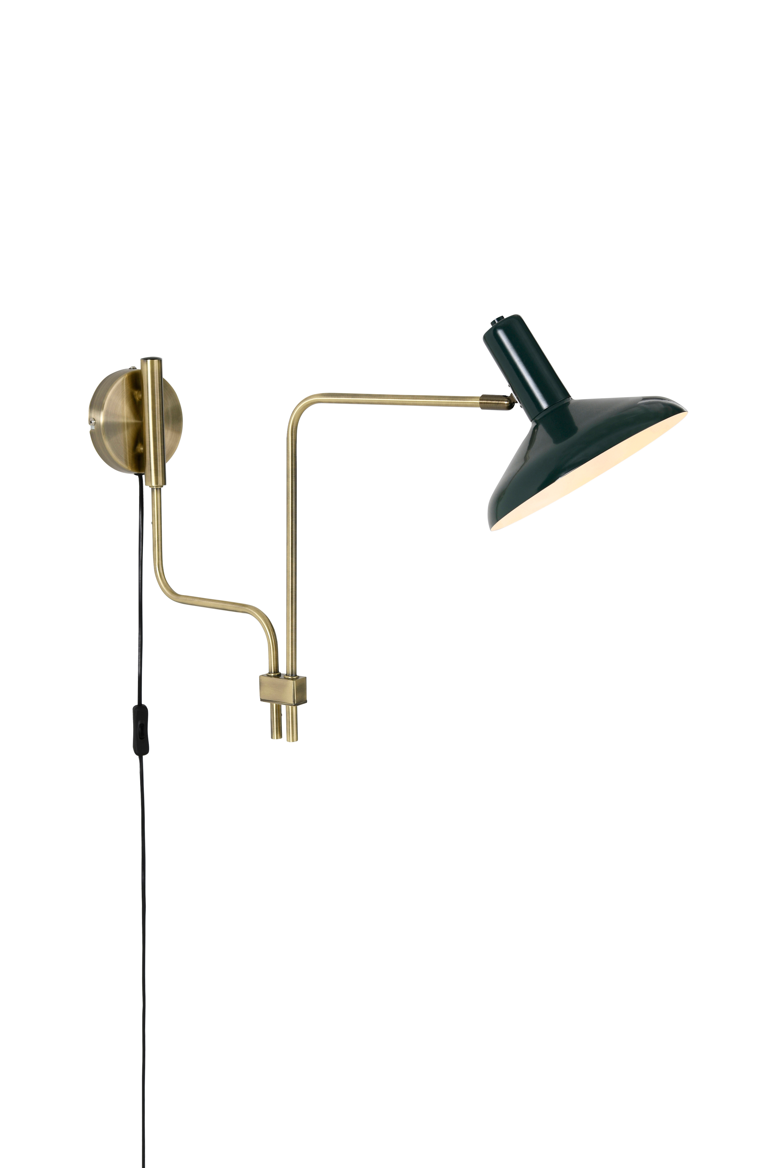 Vägglampa i metall. Armen är svängbar i sidled och skärmen är justerbar i höjd- och sidled. Totalhöjd ca 40 cm. Mått på skärm: Ø 22 cm, höjd 18 cm. Djup från vägg 65,5 cm. Väggplattans mått: Ø 12 cm, höjd 2,5 cm. Svart sladd med strömbrytare, sladdlängd 150 cm. Sockel E14. Max 40W. Ljuskälla ingår ej.