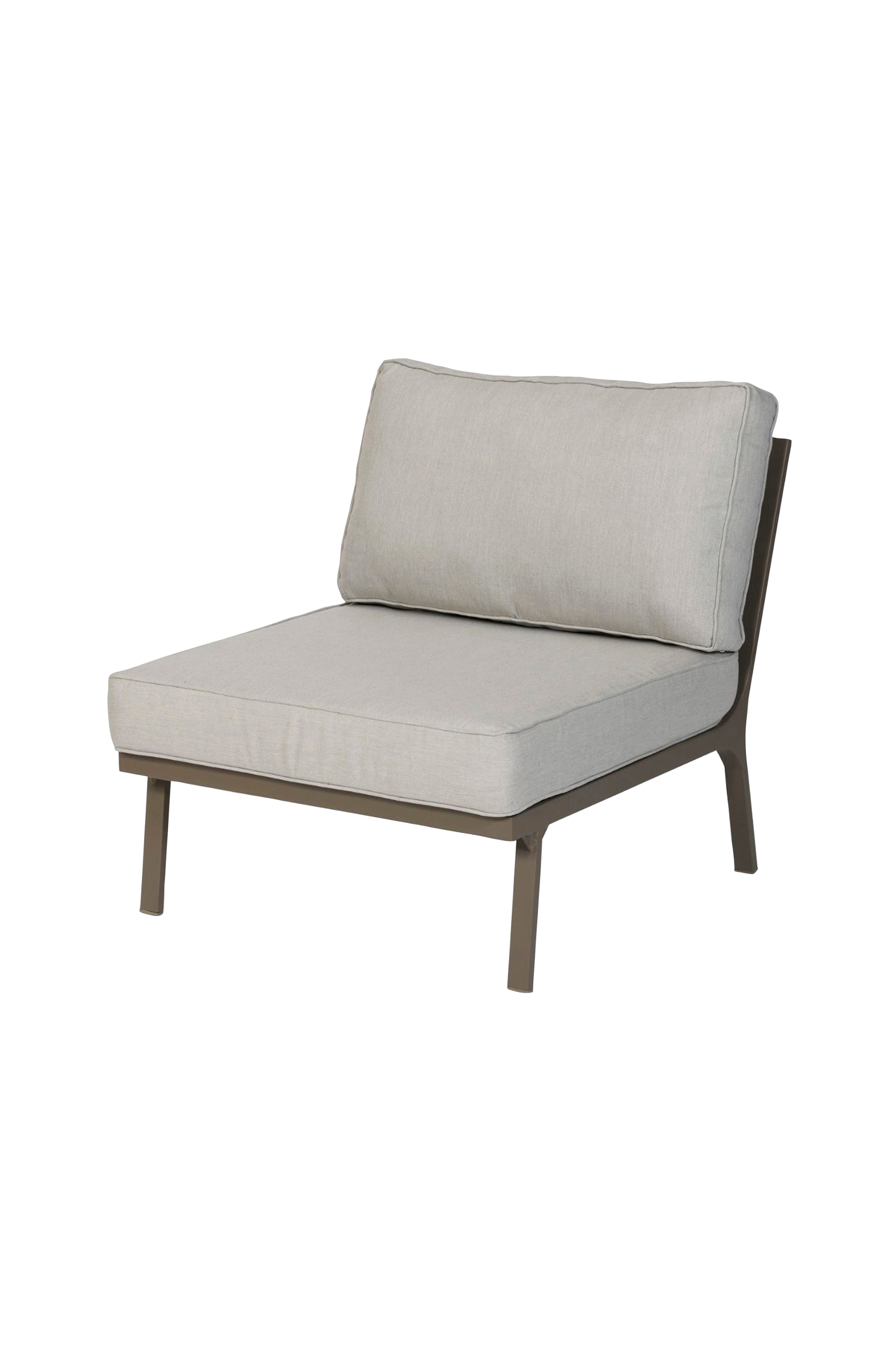 Skapa mer sittutrymme med Orlando mittdel. Den har en stomme av aluminium och vackra och bekväma dynor med klädsel av olefin och snabbtorkande skumfyllning. Detta skum är vattengenomsläppligt och motståndskraftigt mot mögel och röta. Därför kan du lugnt lämna produkten utomhus under hela säsongen för trädgårdsmöbler.