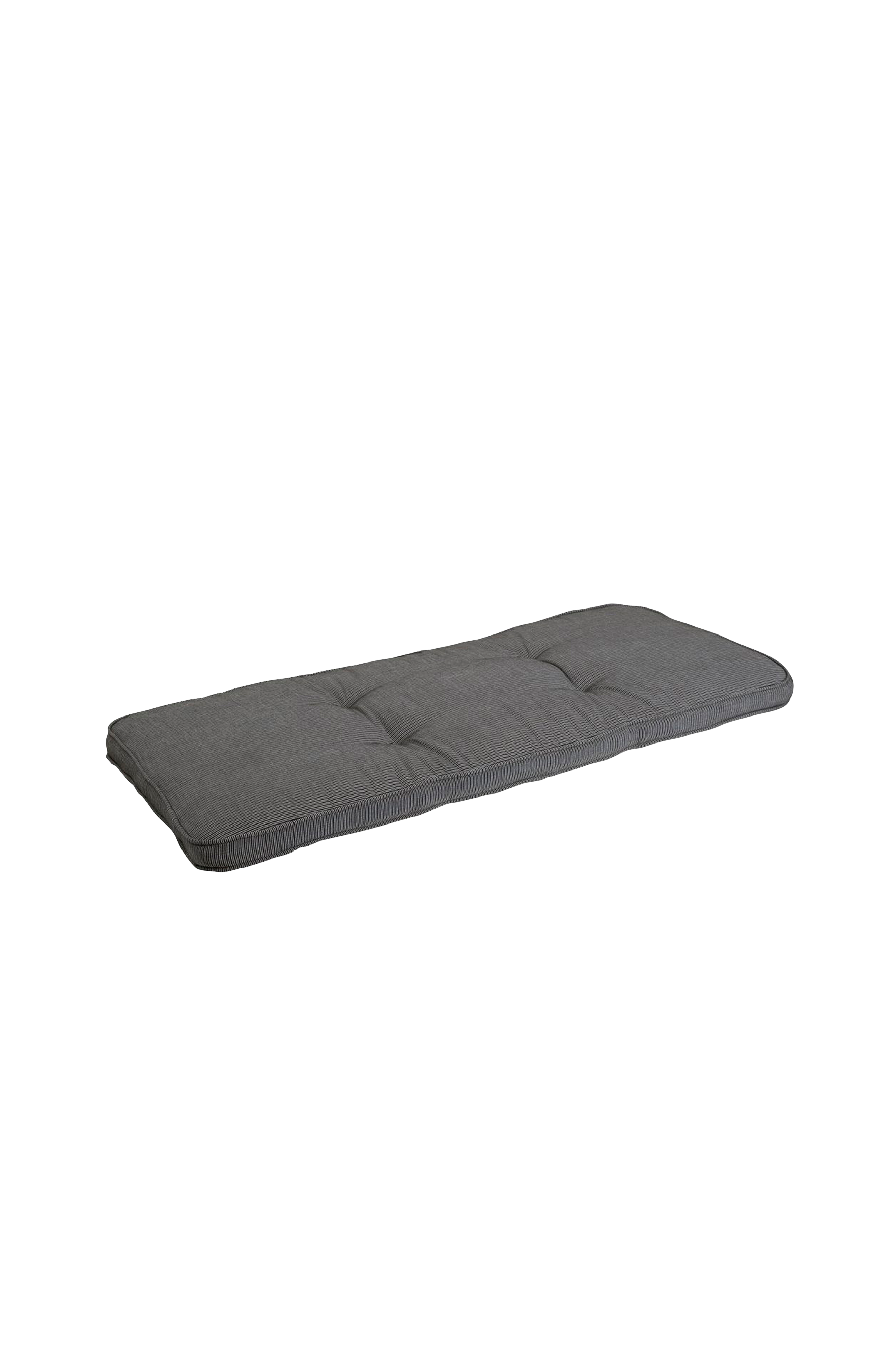 Bänkunderlägg i texturerad dralon med fibervadd runt en tjock skumkärna för mjuk komfort. Boxsydd, 6 cm tjock