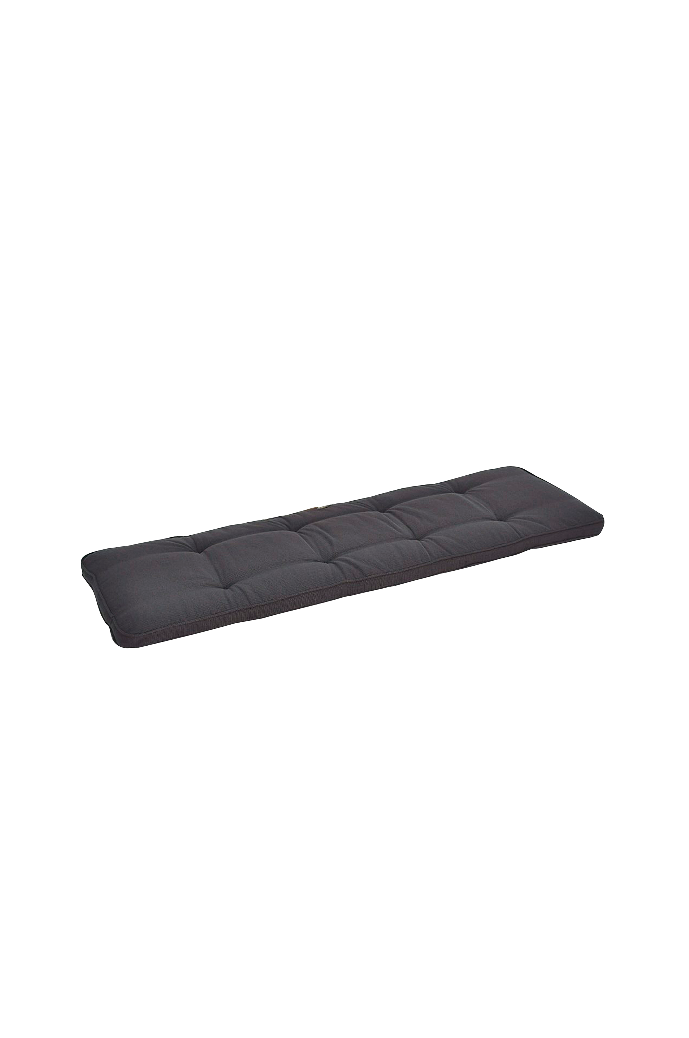 Bänkunderlägg i texturerad dralon med fibervadd runt en tjock skumkärna för mjuk komfort. Boxsydd, 6 cm tjock