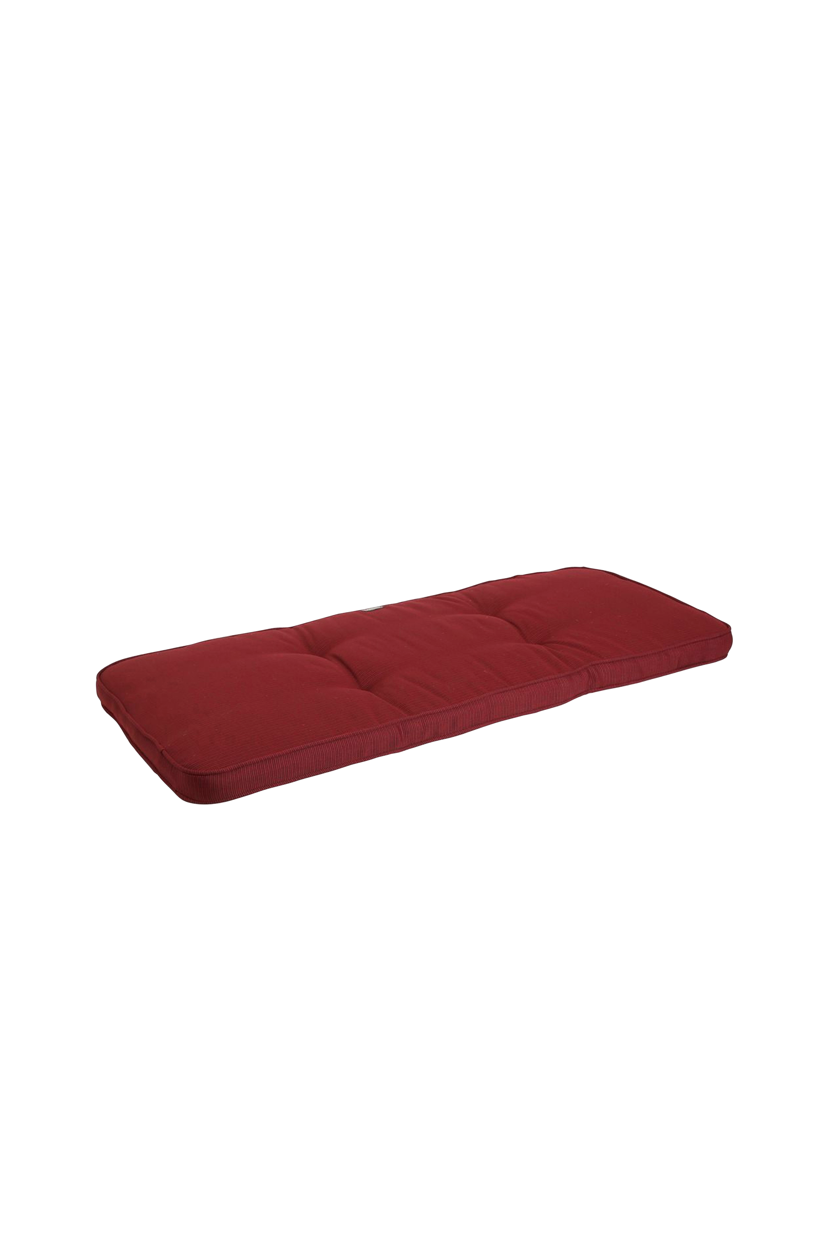 Bänkunderlägg i texturerad dralon med fibervadd runt en tjock skumkärna för mjuk komfort. Boxsydd, 6 cm tjock