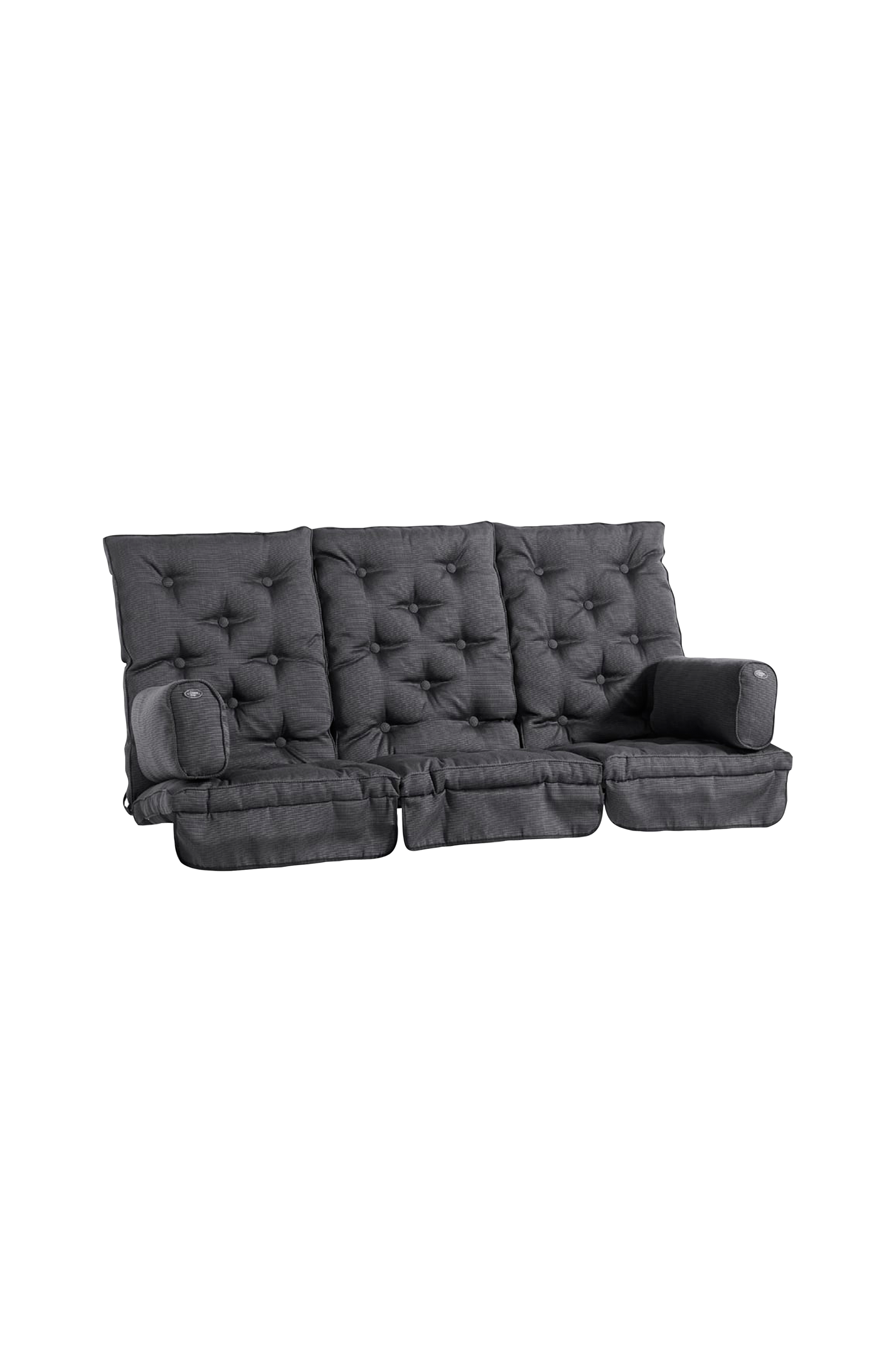 Flockstoppade dynor i strukturerad dralon med fyllning för bästa passform och komfort, inkl. sidokuddar. Box stitched material: fyllning: rippad/skuren polyeter yttertyg: 100% akryl Tvättråd: möbeltvätt Mått: 56x78x50cm/dyna