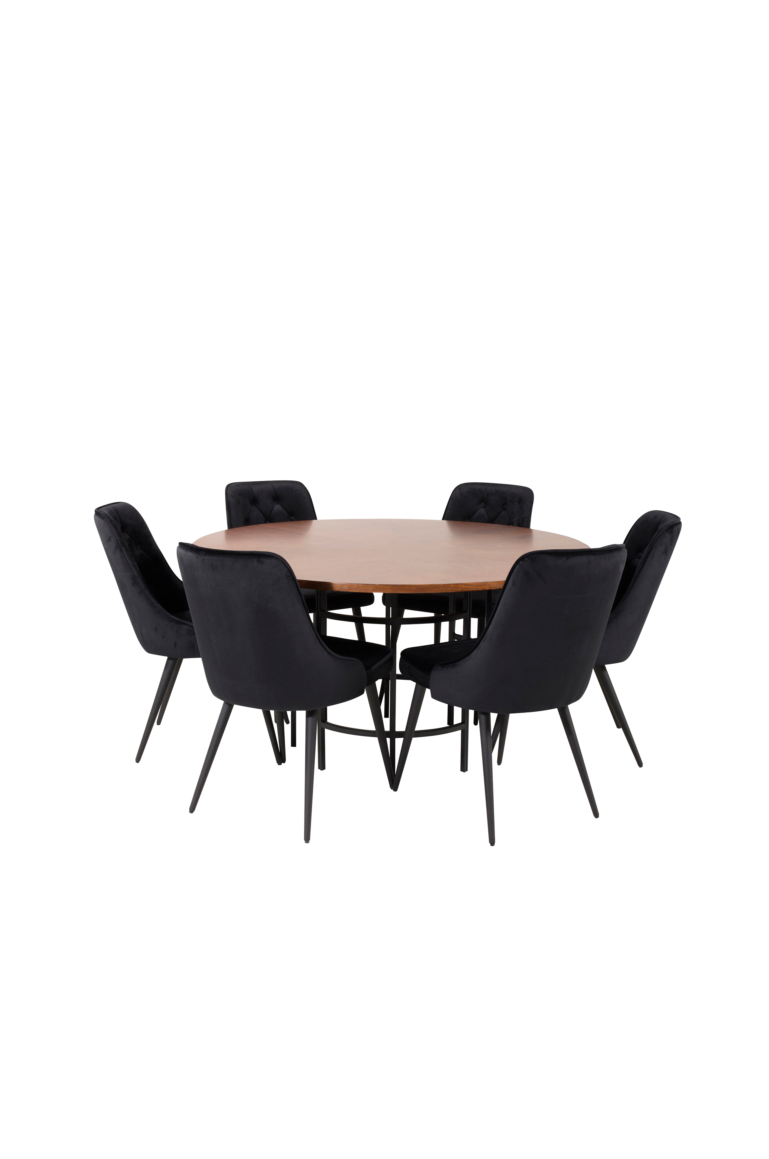 Copenhagen Furniture Fashion matbord med en rund topp i MDF samt fanér och bordsben i metall. Bordets mått: Diameter: 140cm, Höjd: 74cm. Matchas med 6st Venture Design Valleta deluxe matstolar i sammet och stolsben i metall. Stolens mått: Totalhöjd: 90cm, Bredd: 51cm, Djup: 63cm, Sitthöjd: 49cm. Bord och stol kräver enklare montering.