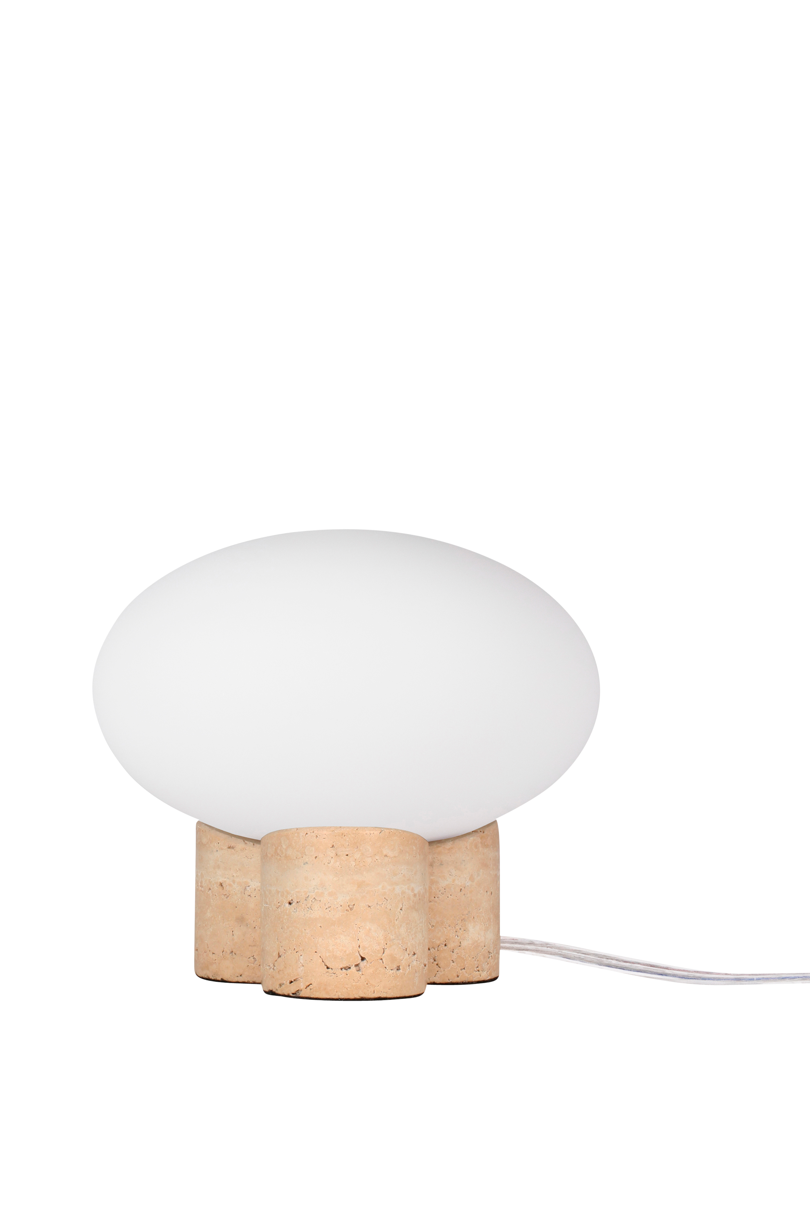 Mammut är en exklusiv och lekfull bordslampa med dess korta ben och stora glaskupa. Dess skulpturala form ger den en robust känsla och ett dekorativt utseende. Lampfoten är tillverkad av polerad och solid grön marmor med vita marmoreringar. Lampfoten matchas med en rund mattvit och tillplattad glaskupa i något överdimensionerad storlek, vilket skapar det lekfulla uttrycket. Mammut har en 200 cm lång transparent kabel med transparent brytare och stickkontakt. Design: GL Design Studio. Ljuskälla medföljer ej.