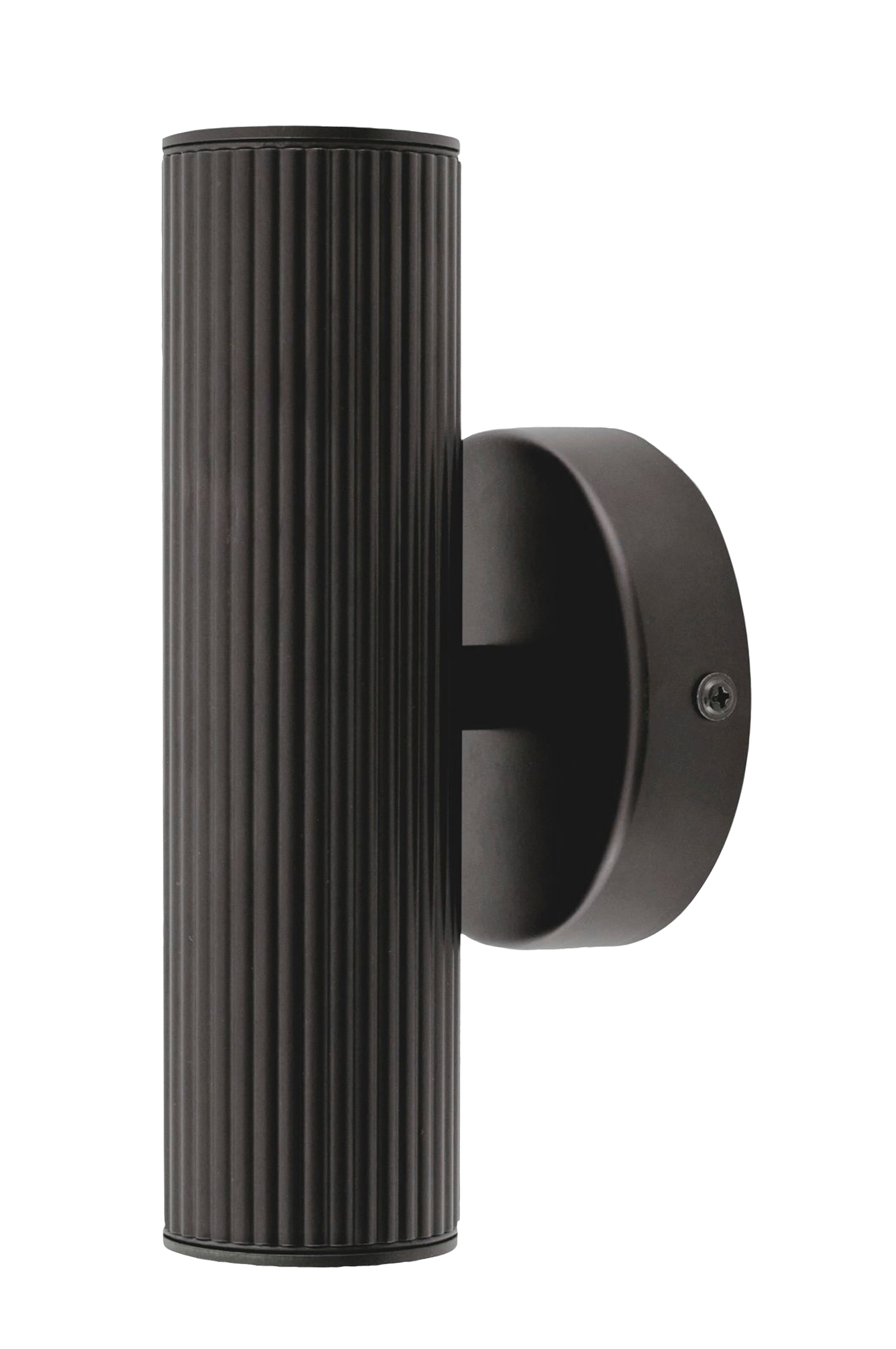 Hubble är en elegant vägglampa som kastar ljus både uppåt och nedåt, vilket skapar ett vackert ljusspel mot väggen. Det räfflade röret är tillverkat av aluminium, vilket gör lampan underhållsfri och motståndskraftig mot rost. Glasskydden i varje ände skruvas enkelt på plats och skyddar ljuskällorna. Med sin ip44-klassning är hubble lämplig för utomhusbruk under tak eller på väggar som är skyddade mot direkt regn. Denna lampa måste kompletteras med två gu10-ljuskällor.