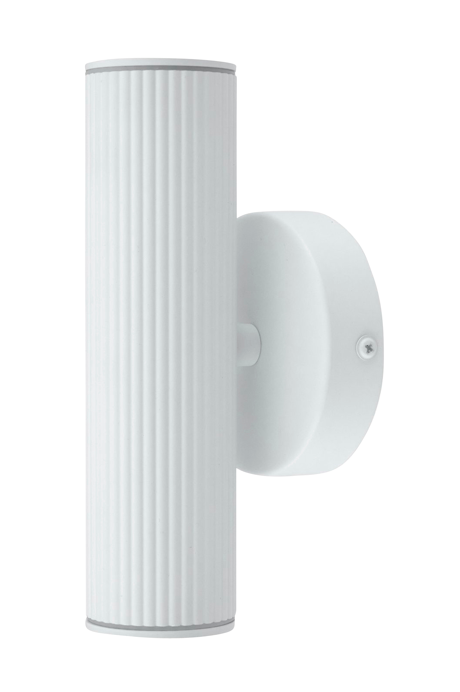 Hubble är en elegant vägglampa som kastar ljus både uppåt och nedåt, vilket skapar ett vackert ljusspel mot väggen. Det räfflade röret är tillverkat av aluminium, vilket gör lampan underhållsfri och motståndskraftig mot rost. Glasskydden i varje ände skruvas enkelt på plats och skyddar ljuskällorna. Med sin ip44-klassning är hubble lämplig för utomhusbruk under tak eller på väggar som är skyddade mot direkt regn. Denna lampa måste kompletteras med två gu10-ljuskällor.