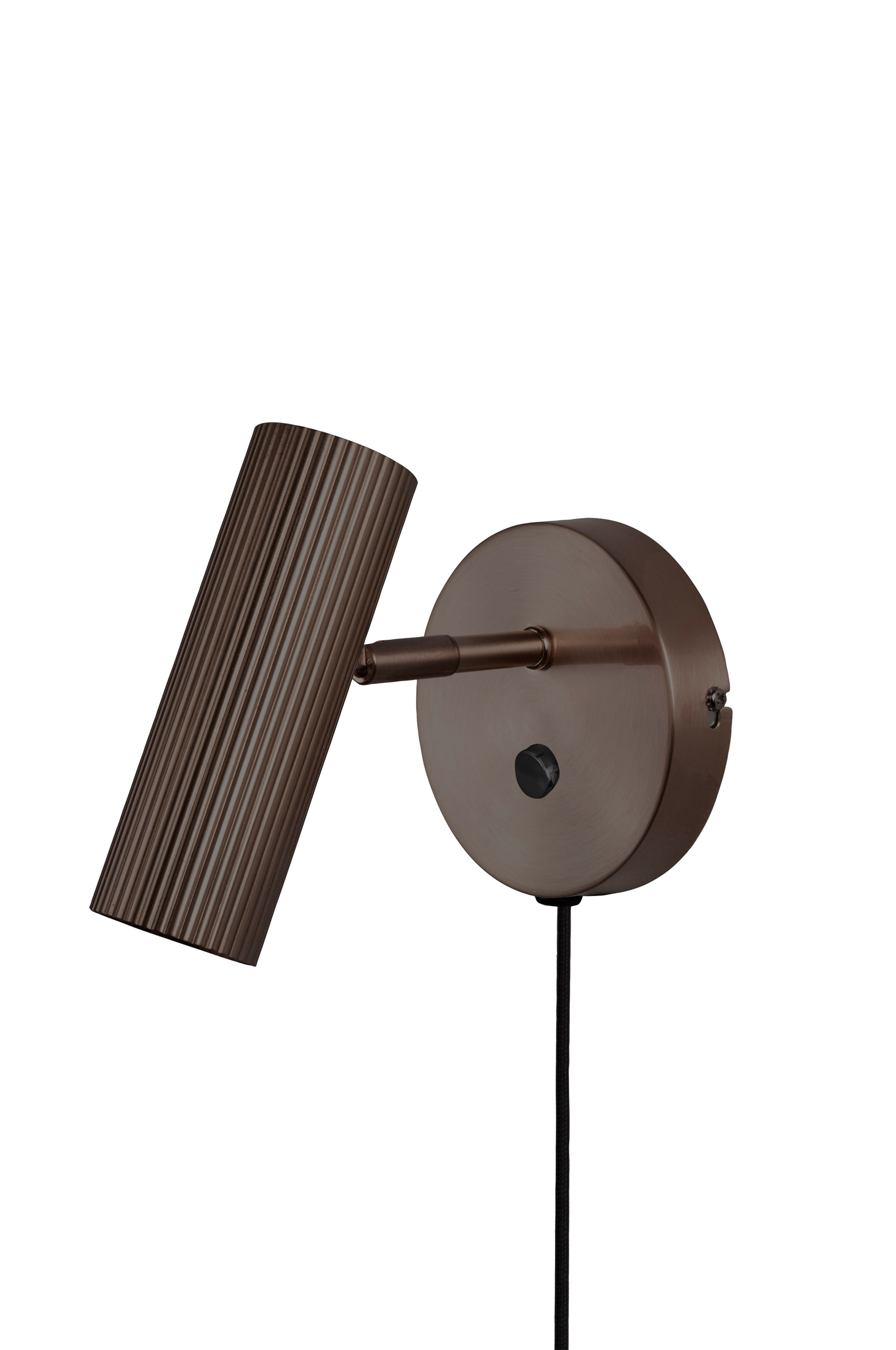 Hubble är en elegant vägglampa i bronslackerad metall med en distinkt ribbad, rörformad skärm som kan justeras i olika riktningar. Lampan levereras med en 200 cm svart textilkabel, europakontakt och en svart strömbrytare (ej dimmer) på väggplattan. Lampan kan enkelt användas för fast installation om så önskas.