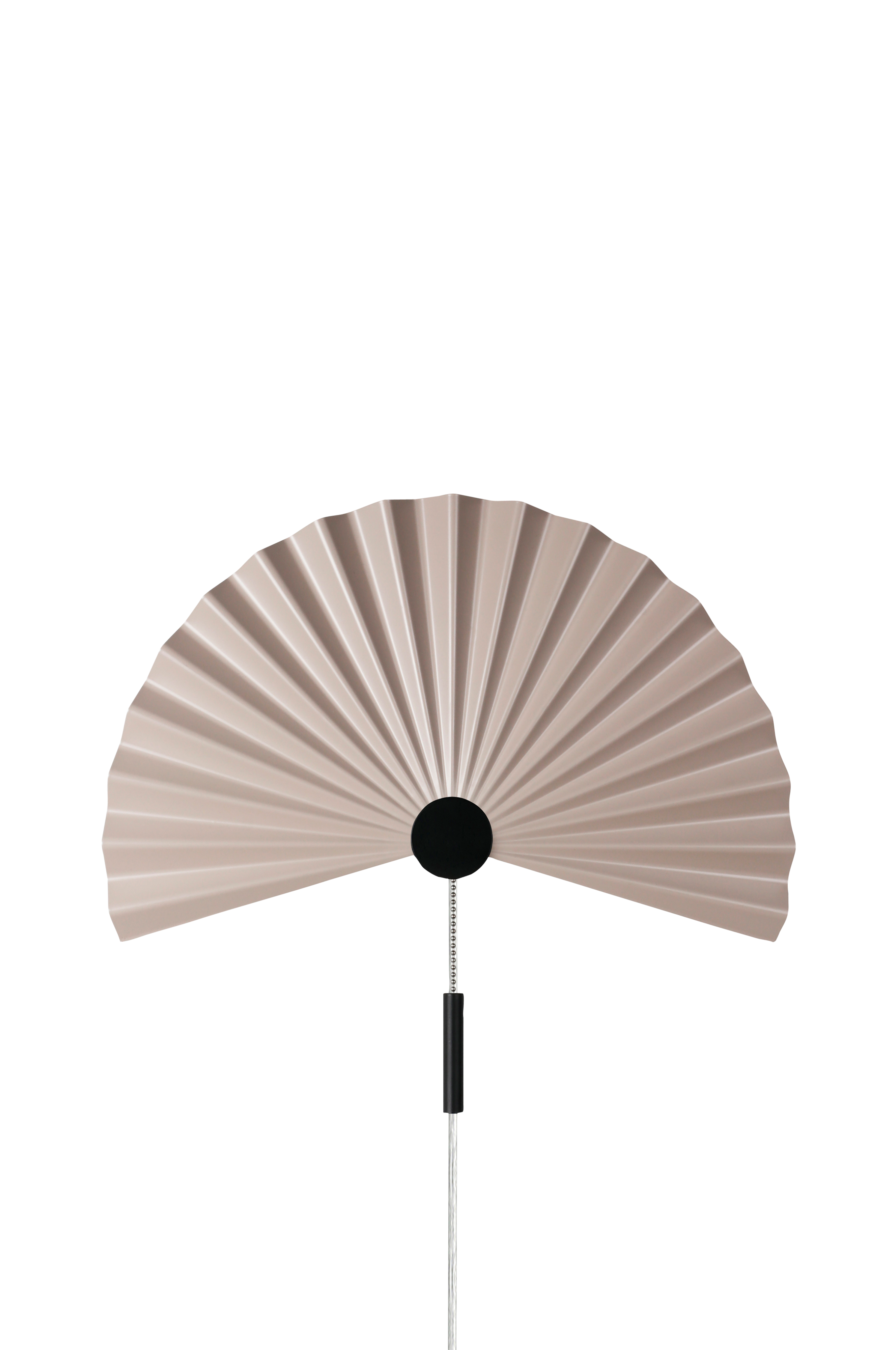 Zen vägglampa är en modern tolkning av en traditionell solfjäder. Med sin enkla form och vackra veckade mattlackerade metall andas denna lampa enkelhet och minimalism och passar perfekt in i den enkla skandinavisk-japanska inredningen. Lampan har en integrerad LED-list på den dolda bakplattan och en dragbrytare på lampan. Zen levereras med en 200 cm lång transparent kabel med stickkontakt, men kan också monteras med fast installation. Design: Patrick Hall. Lamphållare: Integrerad LED 2,1W.