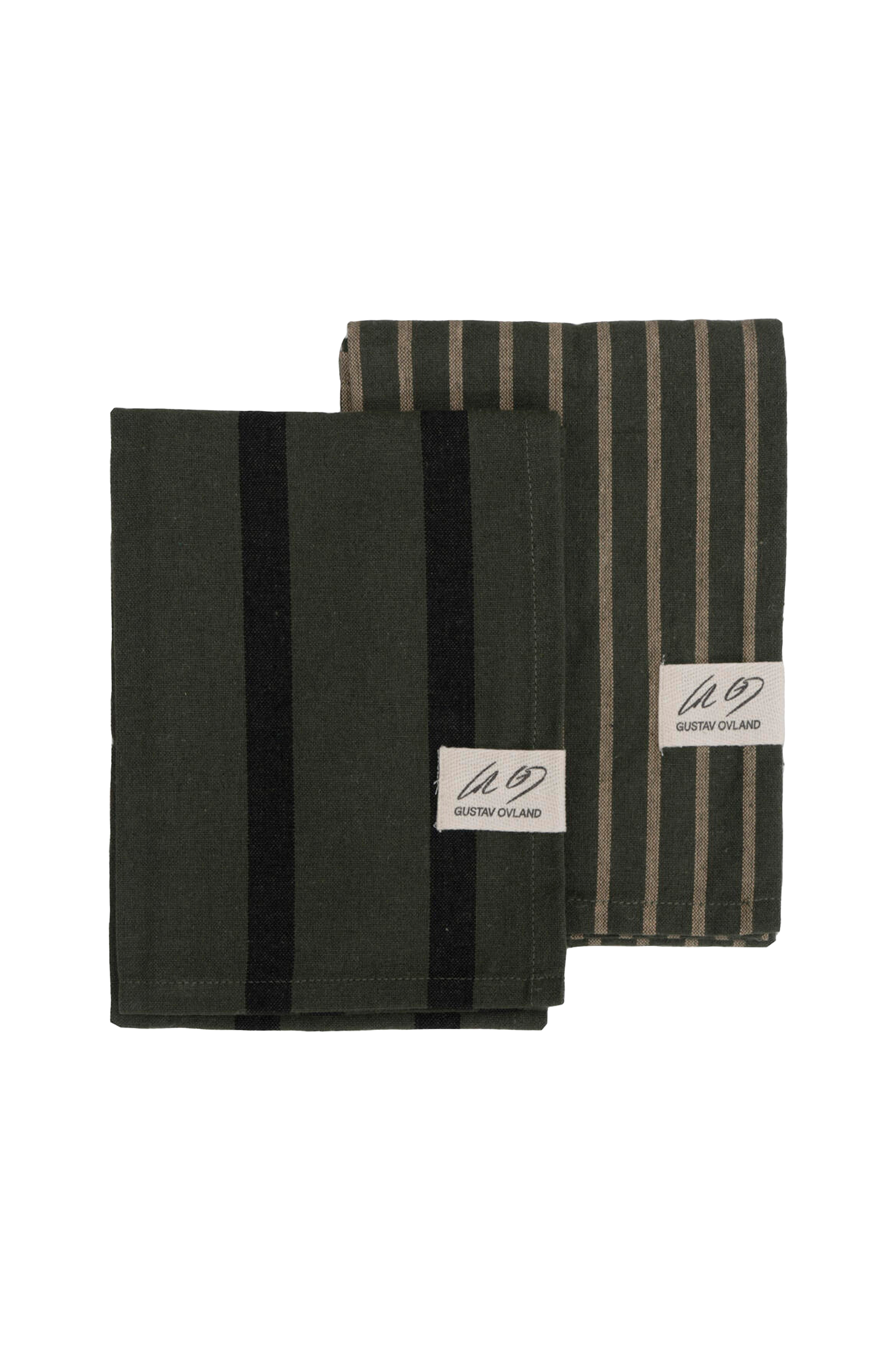 2-pack randiga kökshanddukar från gustav ovland som är perfekta för köket. Gustav är mycket fokuserad på återanvändning och återbruk, och hela köksserien är därför tillverkad av naturlig bomull. Tillverkad av 80% återvunnen bomull och 20% återvunnen polyester - garnfärgad - finns i färgerna rost och grön - består av 2 kökshanddukar, en med smala ränder och en med breda ränder - i köksserien akira ingår även grytlappar, bordsduk, kuddfodral och servetter - denna produkt ingår i gustav ovlands kollektion, stärkelsesfabriken.
