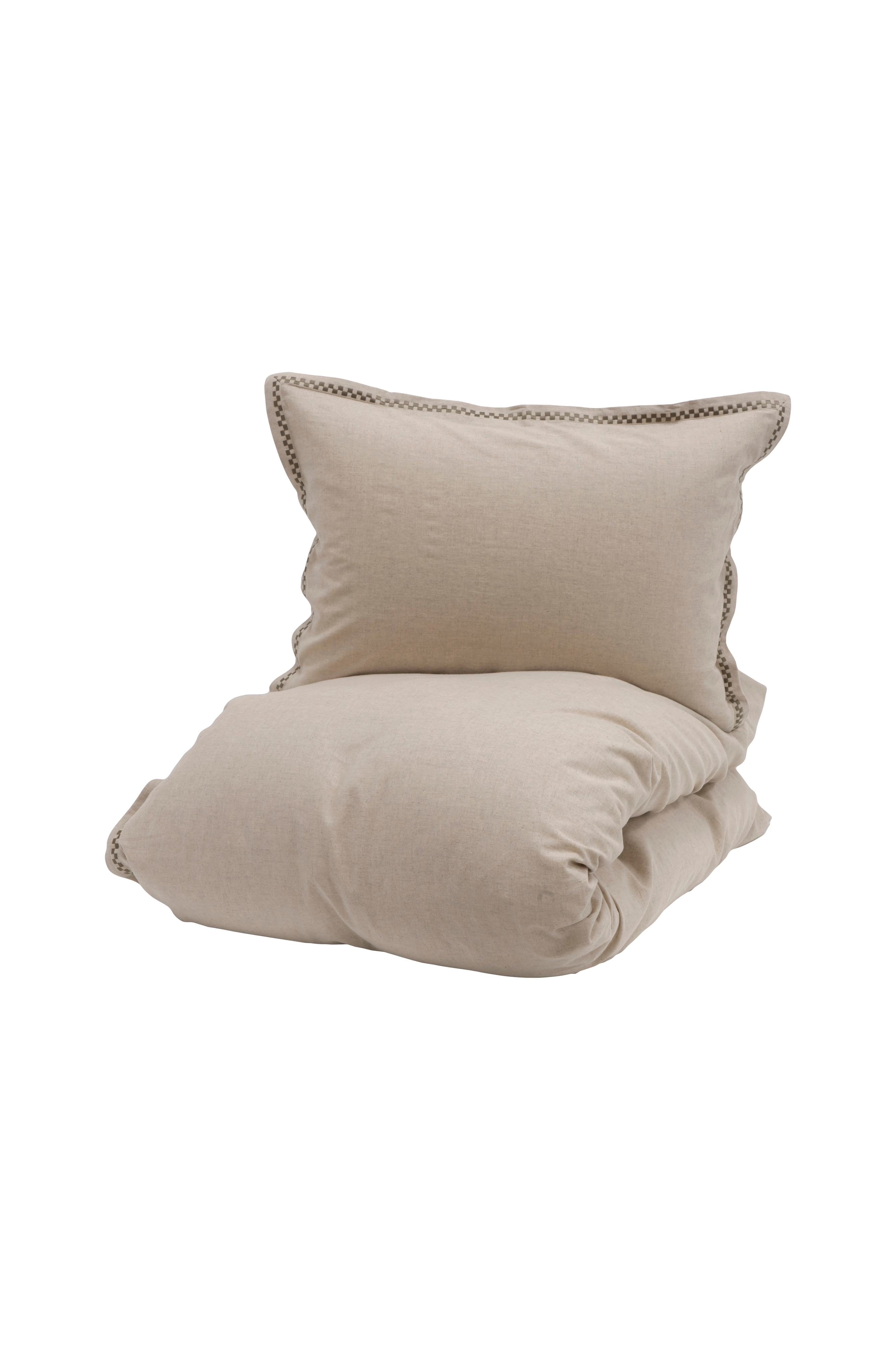 Linne har en naturligt vacker kvalitet som framhäver andra textiliers textur på ett raffinerat sätt och ger en taktil känsla som förhöjer hela sängens uttryck. Bäddsetet Trae är en blandning av bomull och linne, vilket gör att det inte skrynklar sig lika mycket samtidigt som det är lite mjukare mot huden. Det förkroppsligar linnets egenskaper och utstrålar elegans och lyx. I all sin enkelhet finns det ett ton-i-ton-broderi på både örngott och påslakan, vilket framhäver den underliggande elegansen och det klassiska uttrycket. 50% linne och 50% bomull. Oeko-Tex certifierad. 2 cm oxfordram med broderi på både örngott och påslakan. Dragkedja nedtill på påslakanet och örngottet. Förpackat i en utsökt presentask. Bäddsetet består av 1 påslakan och 1 örngott i storlek 50x60.