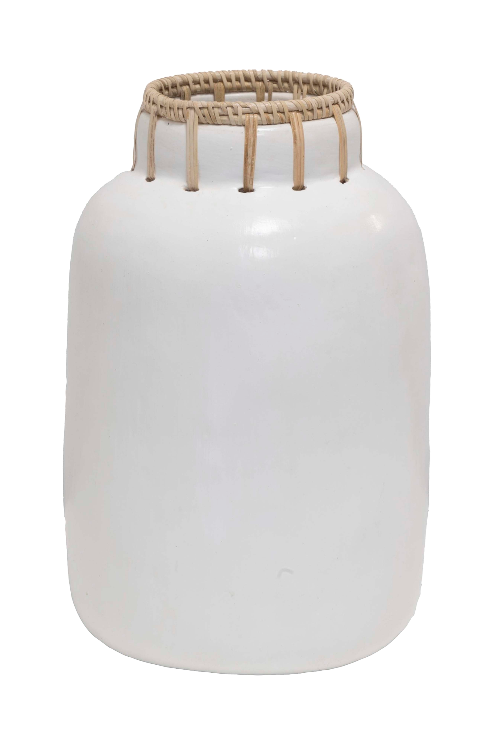 En elegant terrakottavas från halvor bakke som kombinerar naturmaterial och tidlös design. Vasen har en matt, vitkalkad terrakottayta med vackra rottingdetaljer på den övre delen. Använd den för blomsterarrangemang eller som en snygg dekorationsdetalj. Samma design finns även i korgar. Finns även i matchande korgar. Vasen är en del av Halvor Bakkes kollektion.