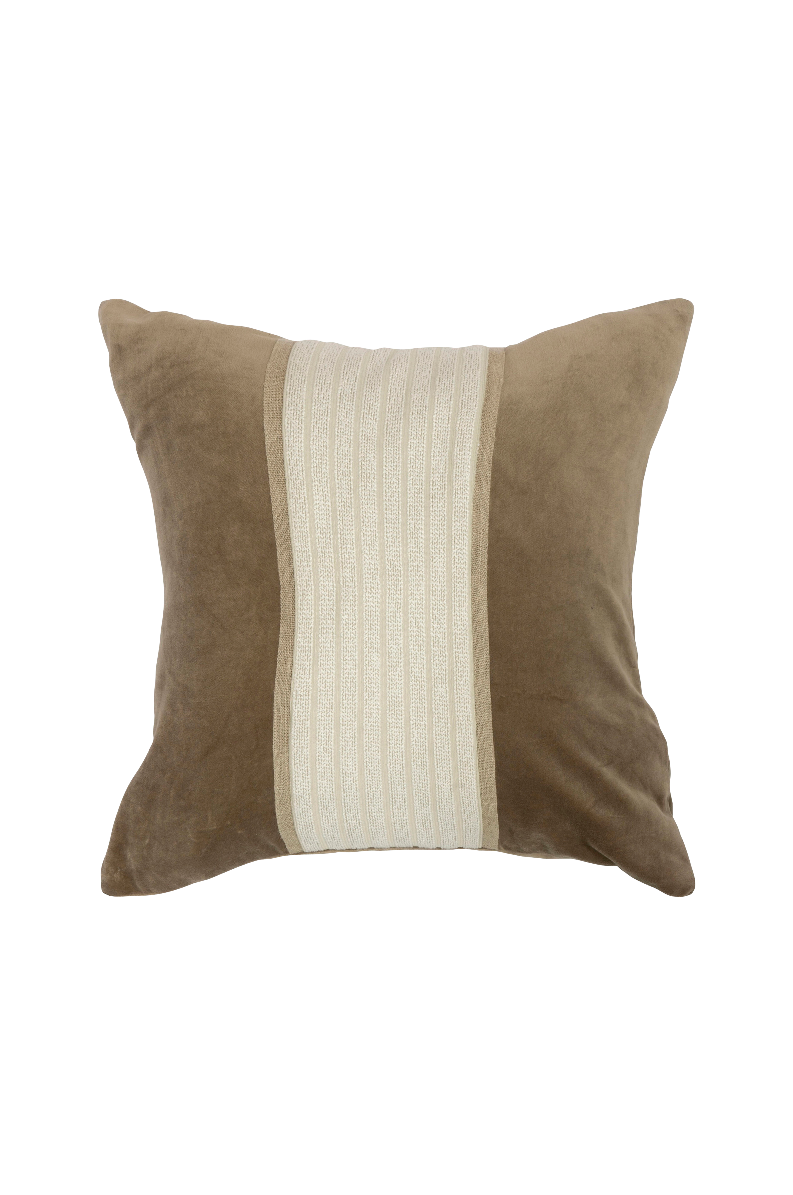 Elegant beige kuddfodral i bomullsvelour med en bred kontrastrand i en ljusare nyans. 50x50 cm. Innerkudde ingår ej. Design av halvor bakke.