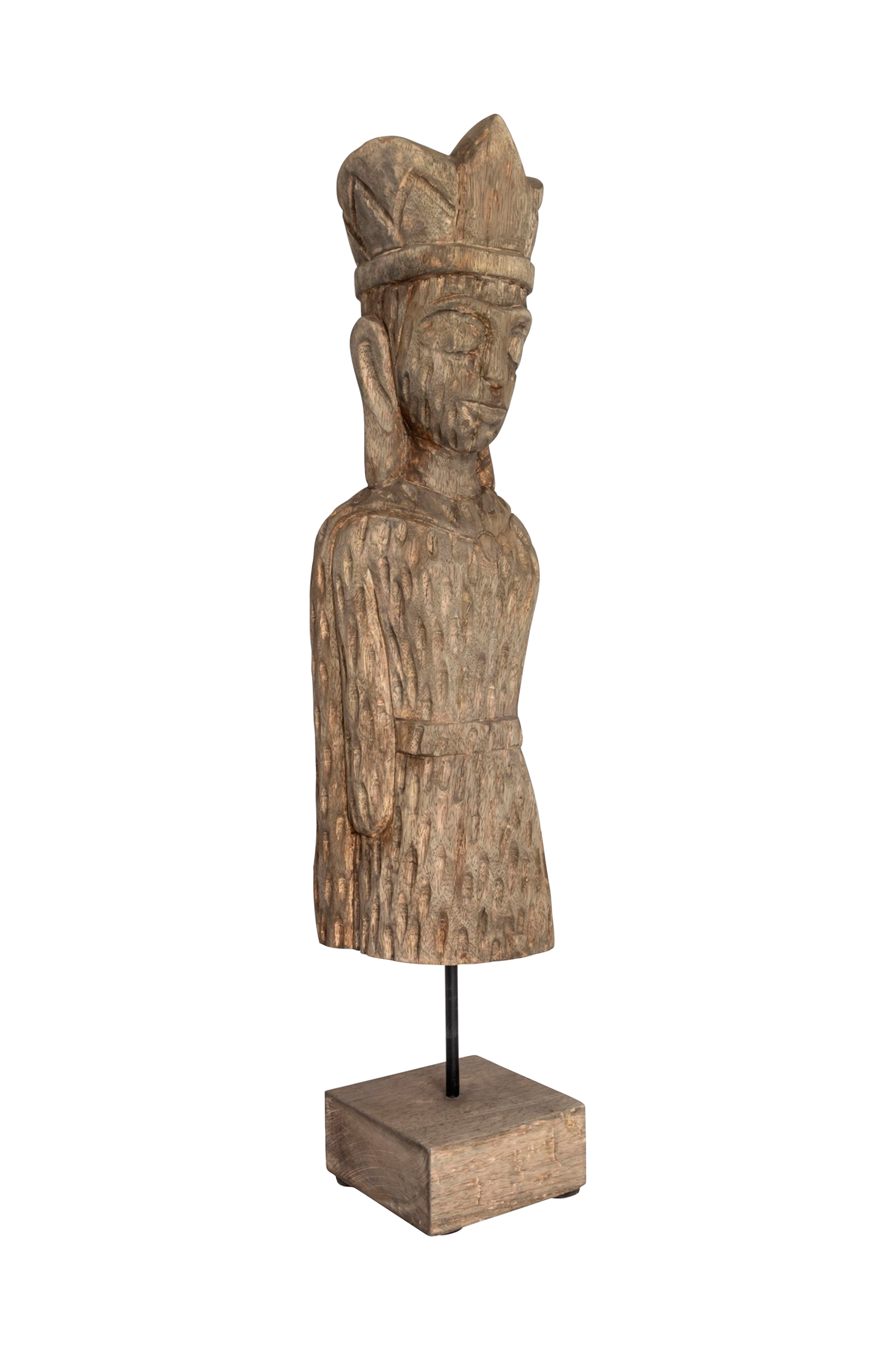 Dekorativ handgjord träfigurin. En dekorativ, handgjord prydnad tillverkad av ljust massivt trä med en rå och rustik finish. Perfekt för fönsterbrädan, skänken eller konsolbordet. Varje figur är handgjord, vilket innebär att variationer i utseende och färg kan förekomma, vilket gör varje figur unik.
