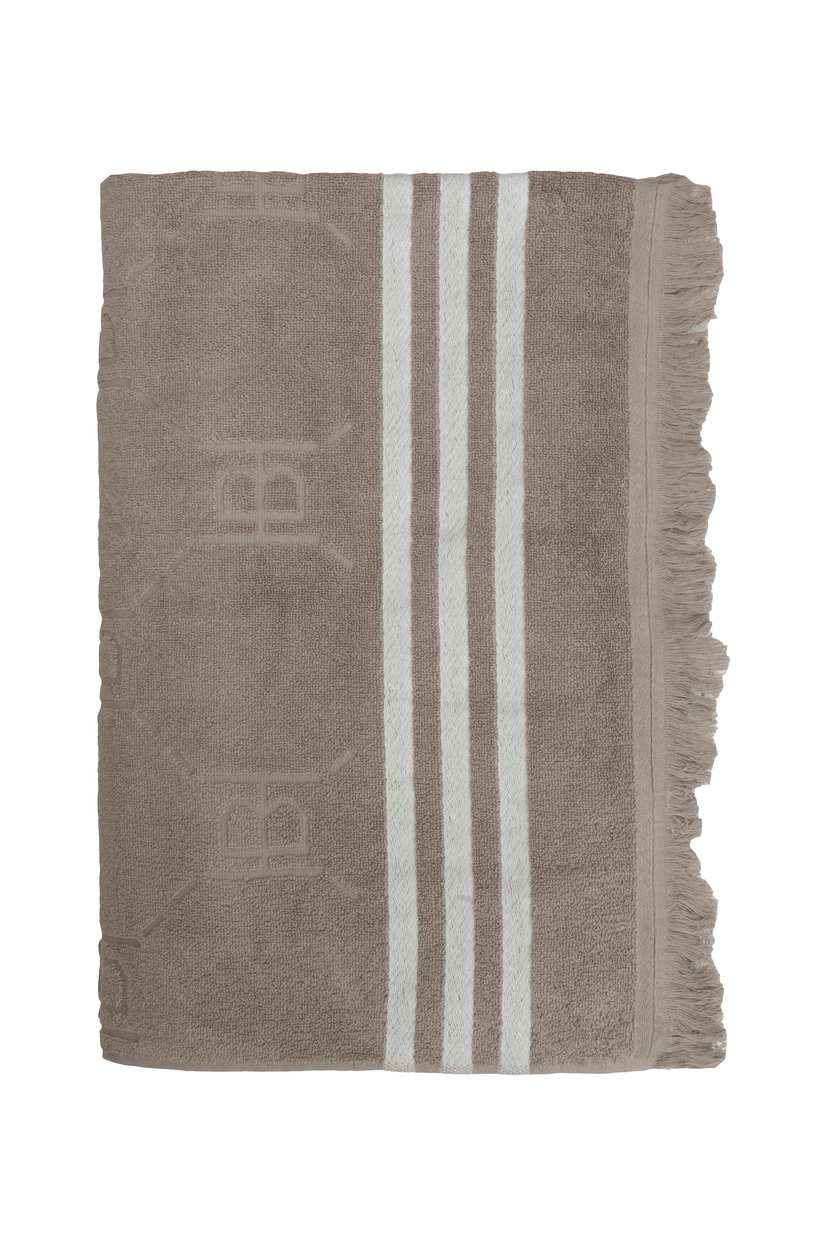 Generöst badlakan från halvor bakke i jacquardvävd bomull, krispigt vitt med klassiska ränder och fina ögonfransfransar. Kvaliteten är utsökt och handduken är perfekt tjock, vilket gör den lätt att rulla ihop och packa ner för en båttur eller ett lockande nattbad. Frotté tillverkad av 100% bomull jacquard. 500 g/m². Storlek: 100x180 cm. Fransar på båda kortsidorna. Vackra beige och blå ränder på båda kortsidorna. Handduken är en del av Halvor Bakkes kollektion med godnattsagor.