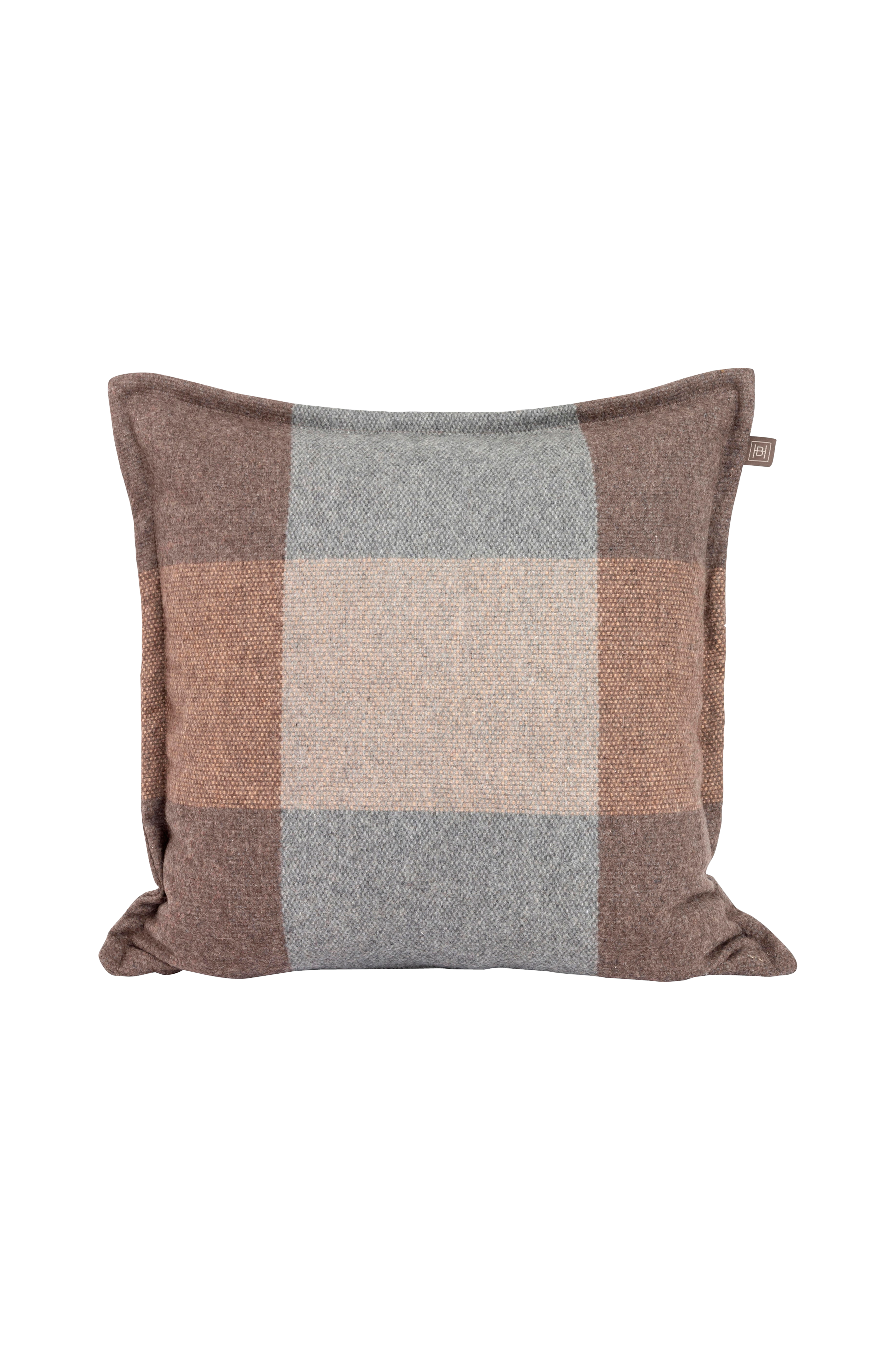 Härligt kuddfodral i ull med stora rutor i nyanser av brunt, beige och grått. Ull är ett material som andas, vilket gör kuddfodralet bekvämt året runt. Överdraget har en stilren finish som passar perfekt i alla rum. Material: 65% ull och 35% andra fibrer. Storlek: 50x50 cm. Innerkudden köps separat. Den dekorativa kudden är en del av Halvor Bakkes kollektion