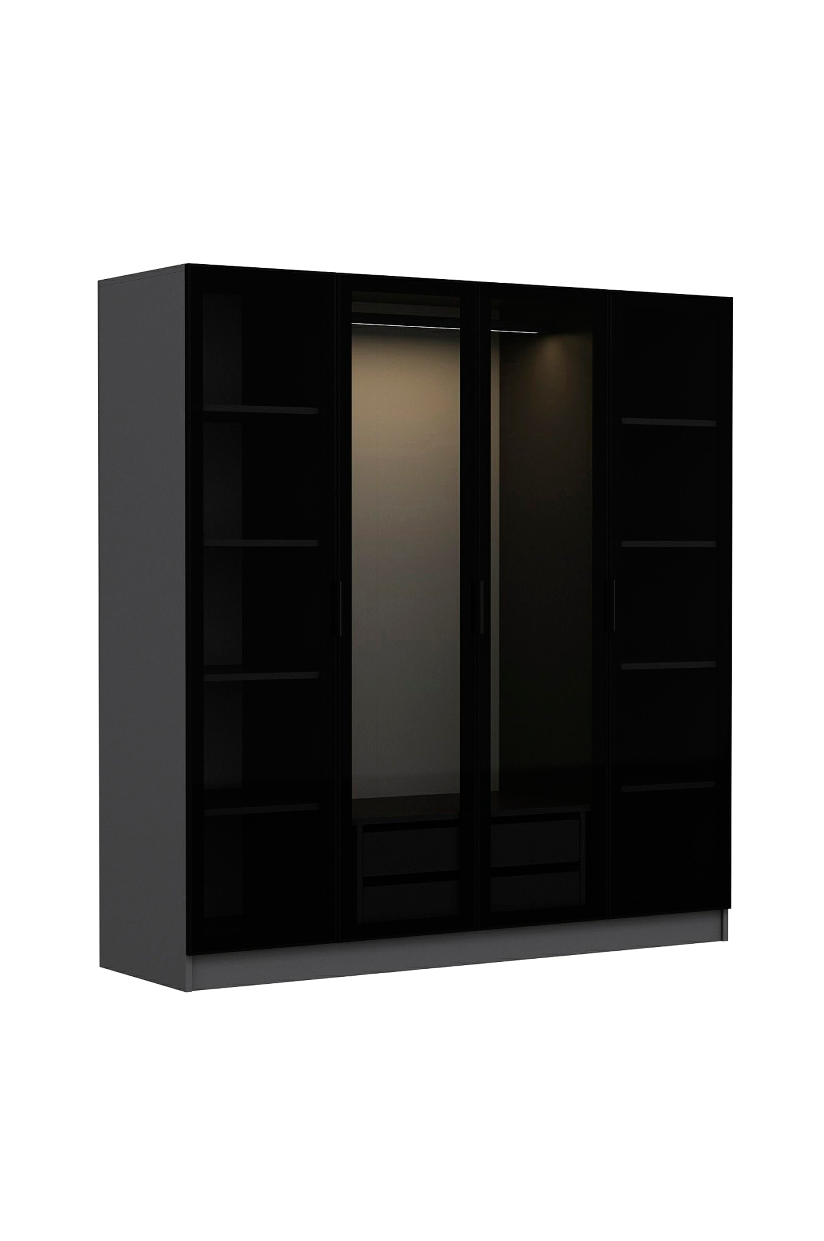 Garderob - AYLA presenterar en elegant förvaringslösning för heminredningsentusiaster. Denna garderob är tillverkad av 100% melaminbelagd spånskiva och har en robust tjocklek på 18 mm. De väl tilltagna måtten, bredd 180 cm, höjd 210 cm och djup 52 cm, ger generöst med utrymme. Med eleganta glasdörrar ger den en modern touch till alla sovrum.